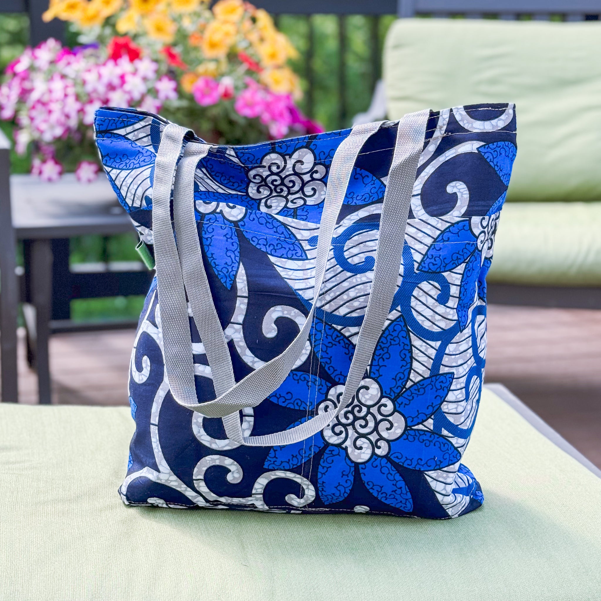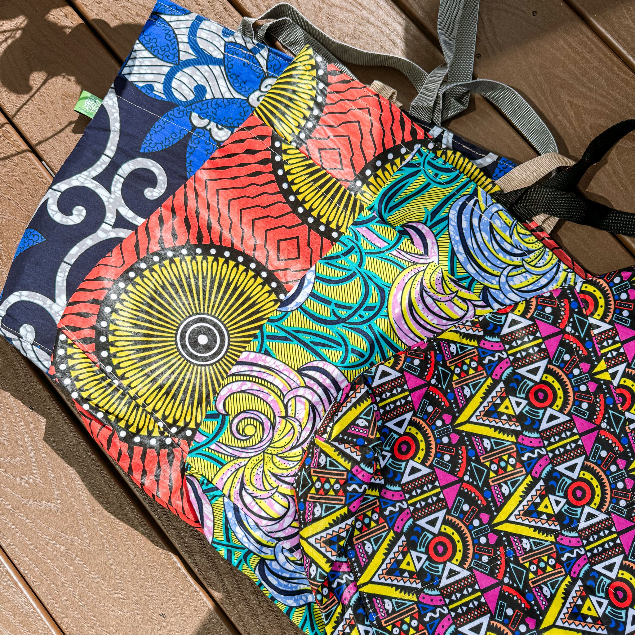 PLEASE NOTE: The pictures below show a sampling of the colors/patterns used to create these totes. Because the fabric available to the artisans varies, we cannot send you a specific color or pattern, but know that yours will be beautiful!