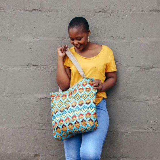 Each tote is cut by hand and sewn on hand-powered sewing machines by women in Eswatini and comes in a variety of prints and colors. The purchase of one tote supports the livelihoods of these amazing women, as well as providing FMSC meals for children around the world.