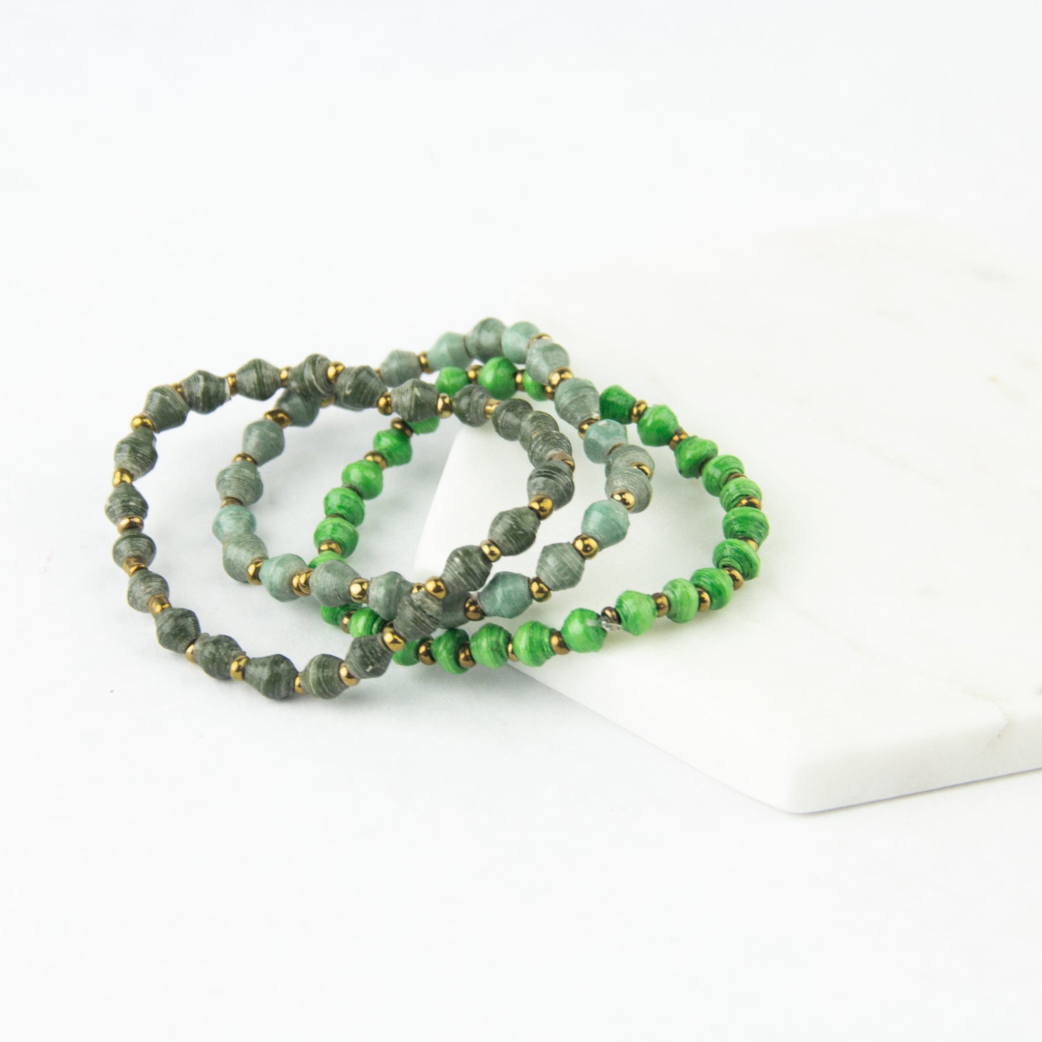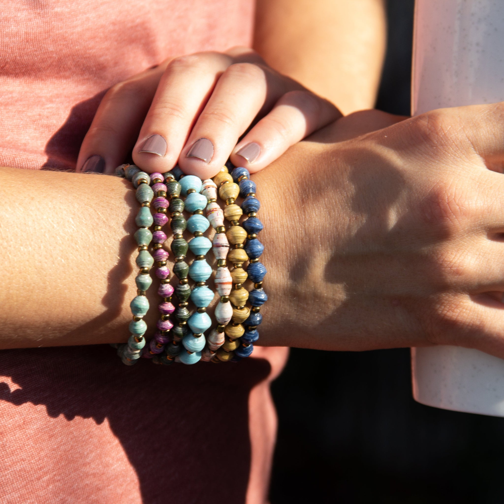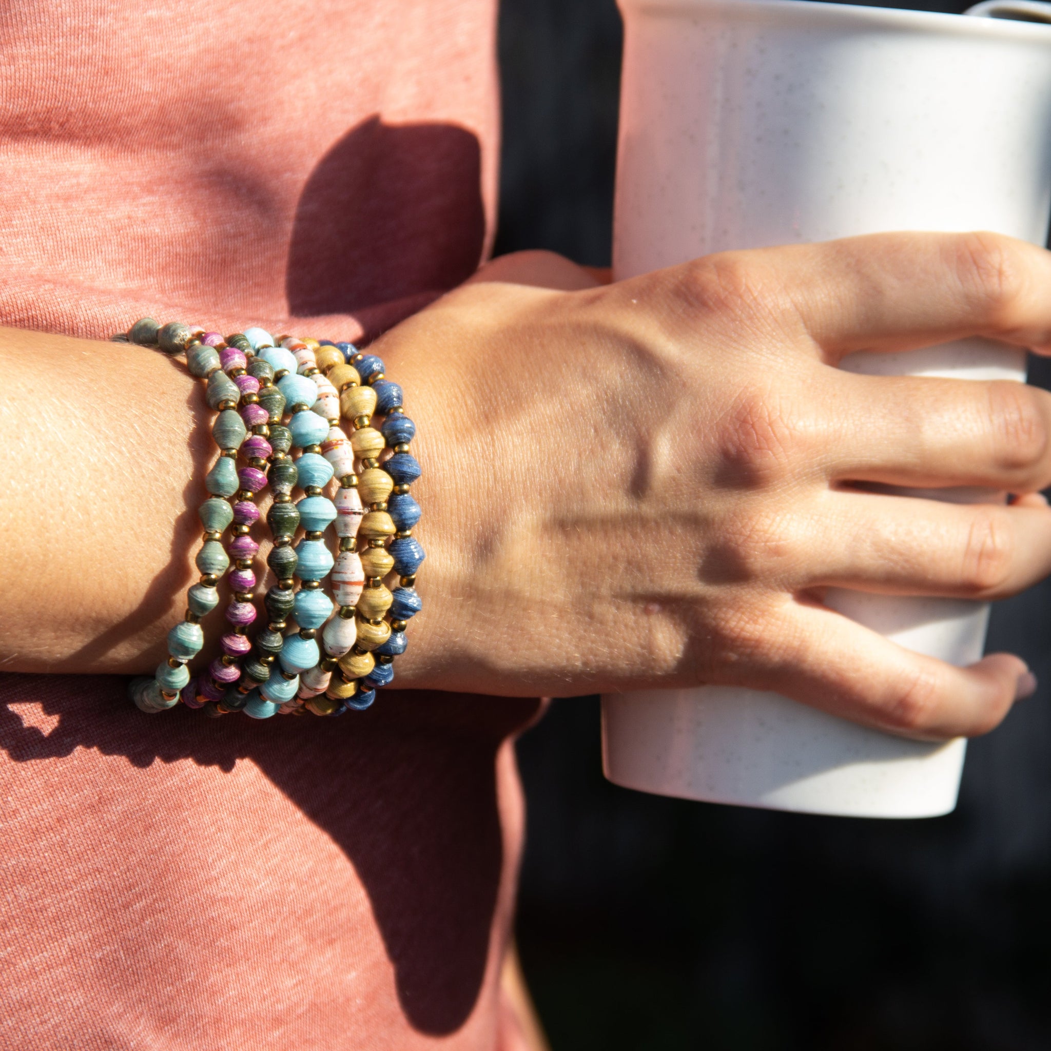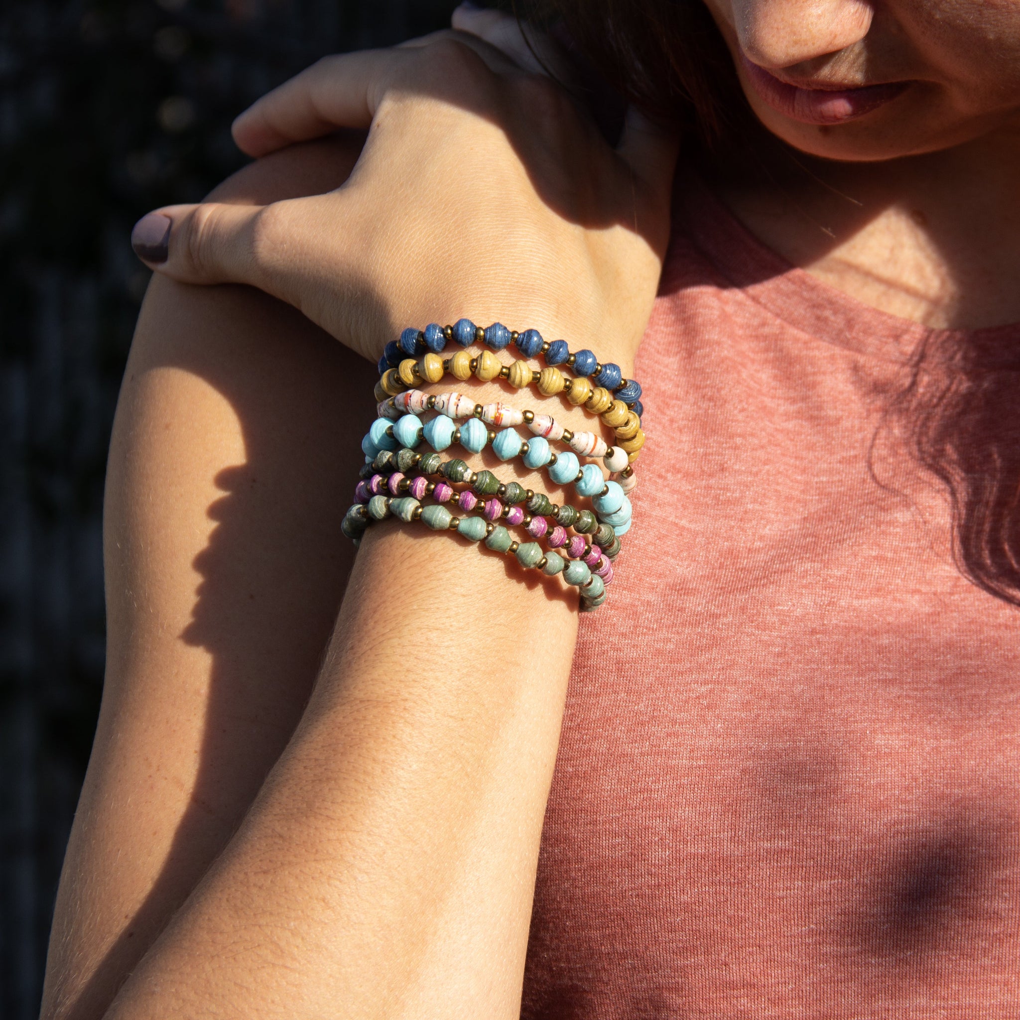 PLEASE NOTE: The pictures below show a sampling of the colors used to create these bracelets. Because the magazine paper available to the artisans varies, we cannot send you an exact color, but you can choose which color family you'd like your bracelet from.