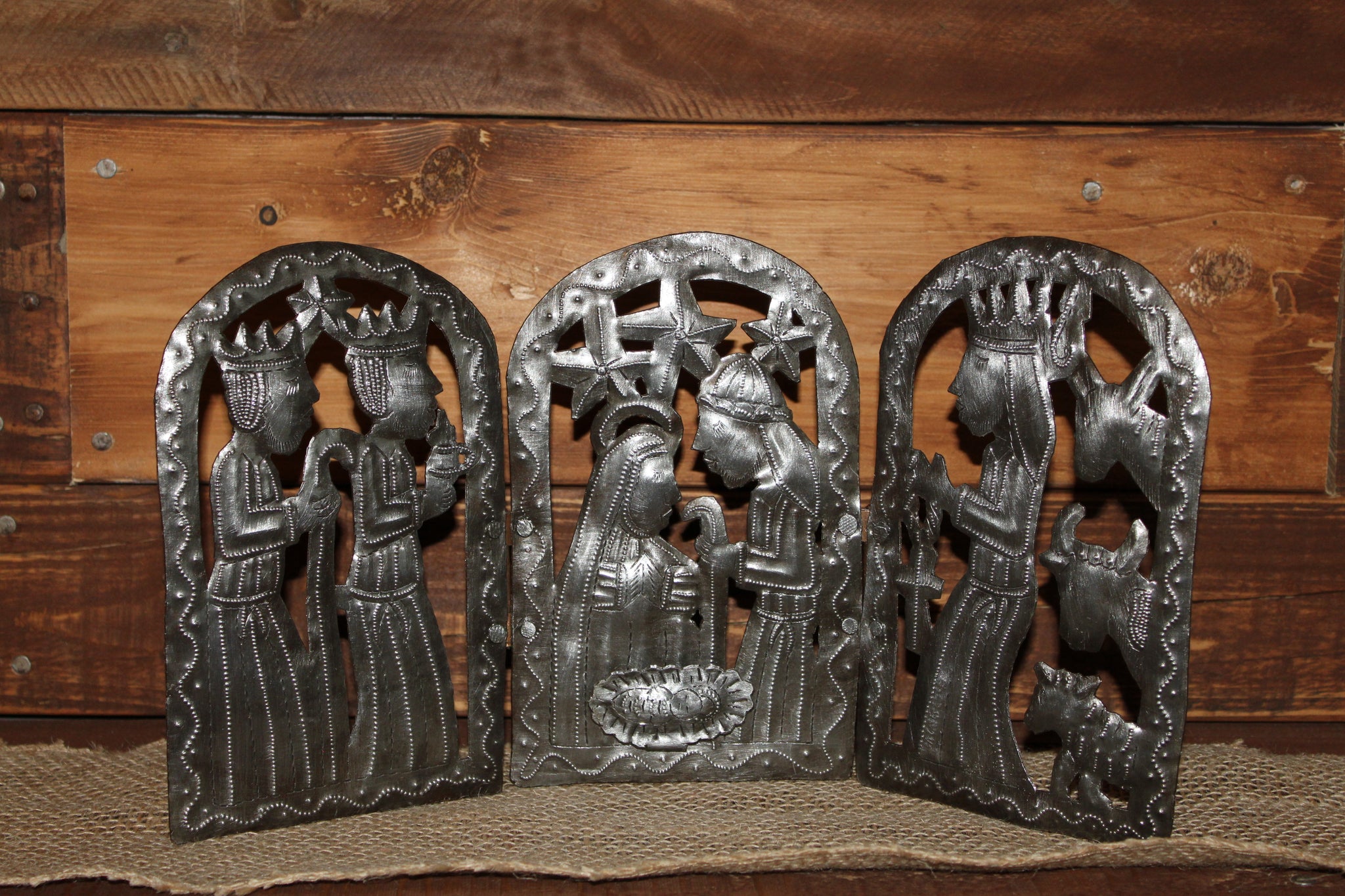 The trifold design allows the nativity to stand gracefully on mantels, shelves, or holiday tables, while its durable metal construction offers lasting beauty you can display year after year. Subtle variations in each piece reflect the artisan’s hand, making every nativity uniquely meaningful.