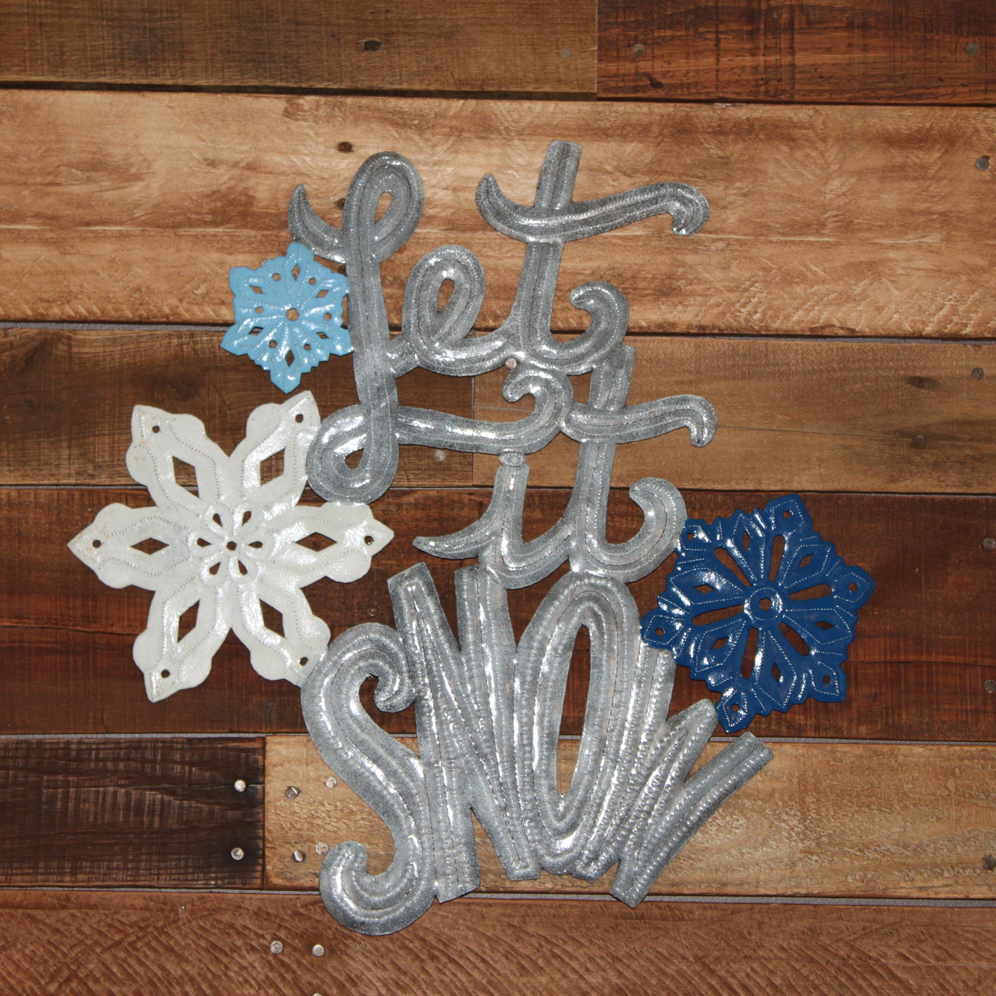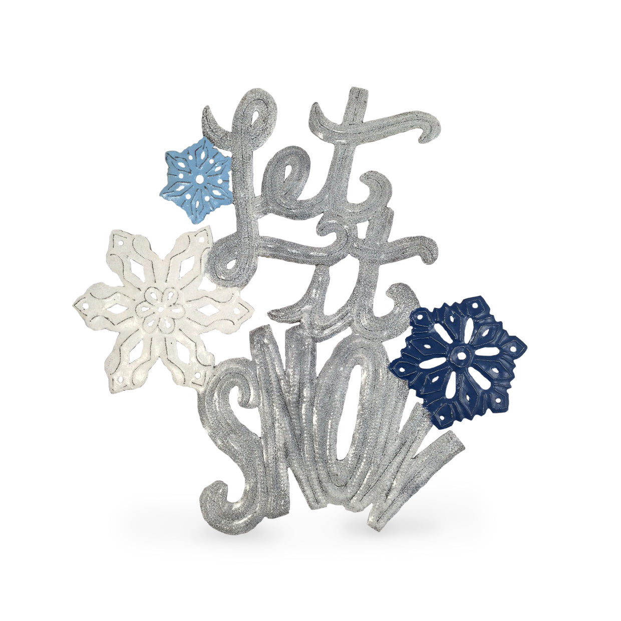 Bring a touch of winter charm — and global impact — to your home with this "Let It Snow” Oil Drum Art, lovingly handmade in Haiti. Each piece is carefully crafted by skilled artisans using traditional techniques that celebrate creativity, resilience, and culture.