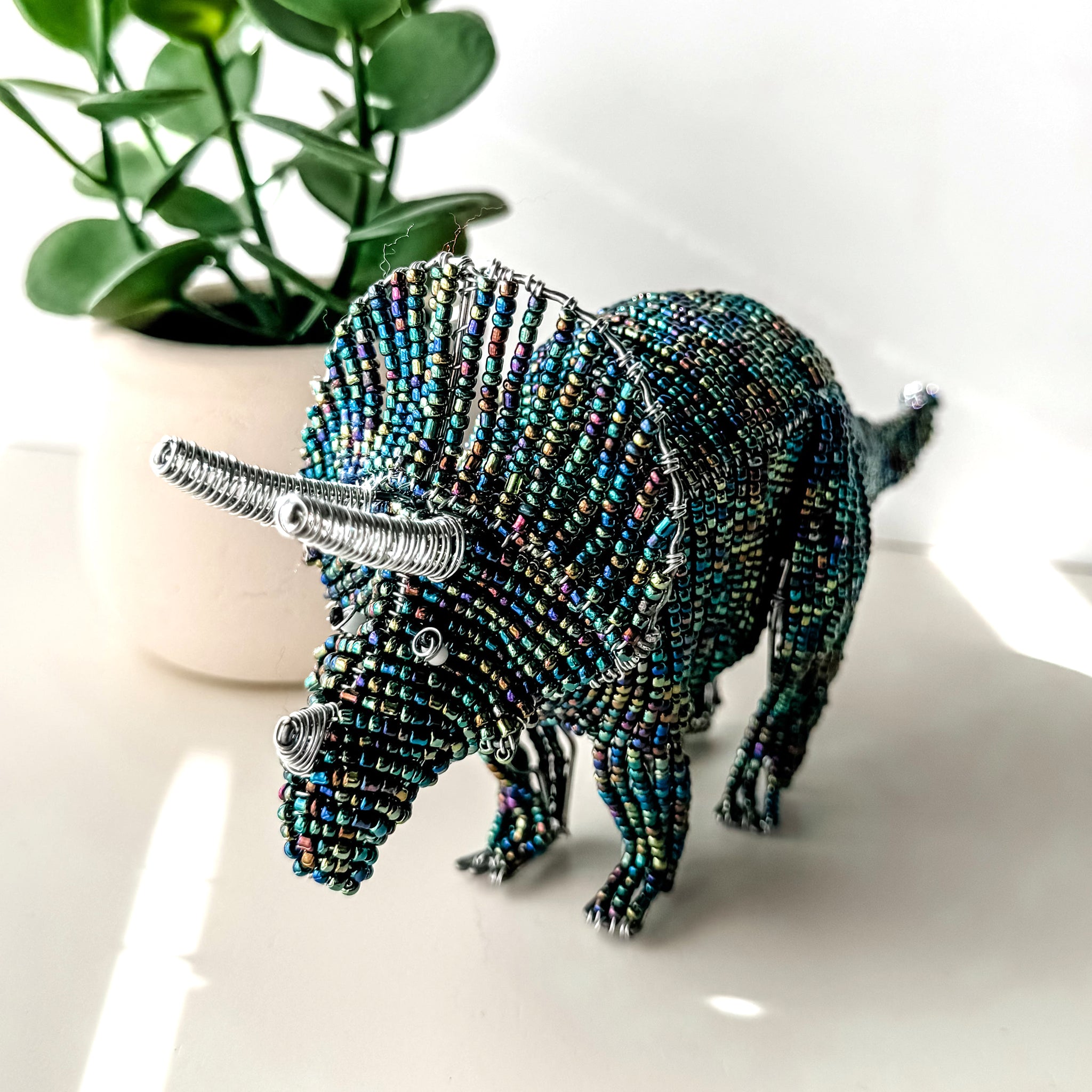 These fierce beaded dinosaurs would make the perfect decor for a child's room or school classroom! Handmade, bead-by-bead, by the Khutsala Artisans in Eswatini, Africa, these beaded dinosaurs are strong and very well-made. The craftsmanship is truly amazing.