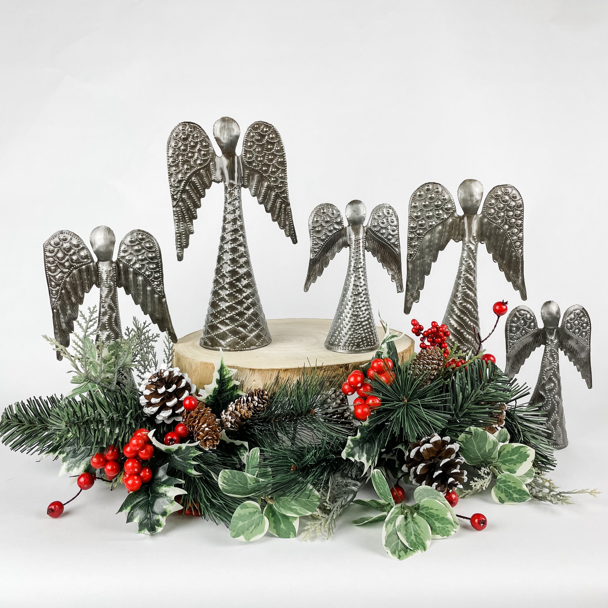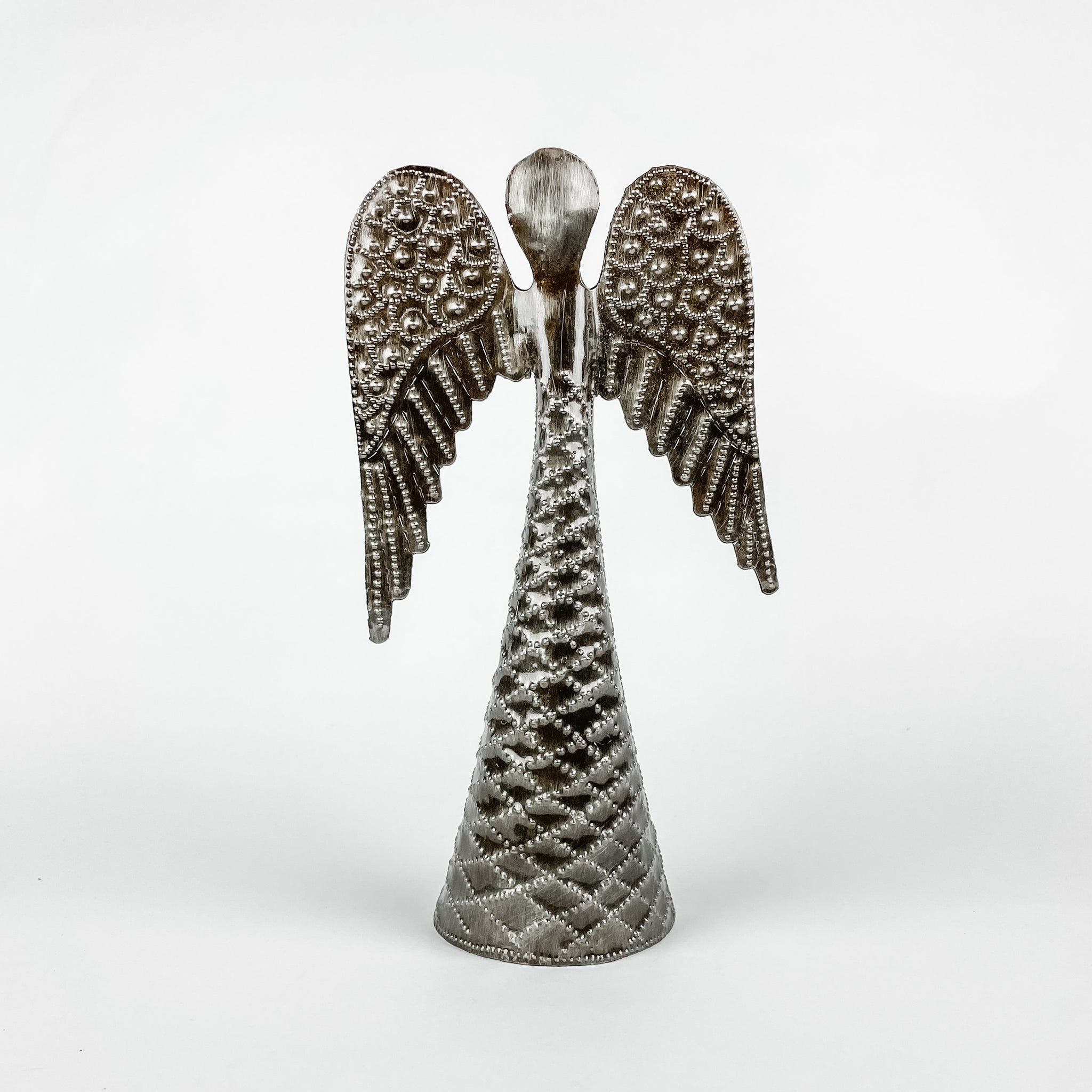 Add an elegant touch to your holiday décor with this beautiful metal angel, handcrafted from 55-gallon oil drums.