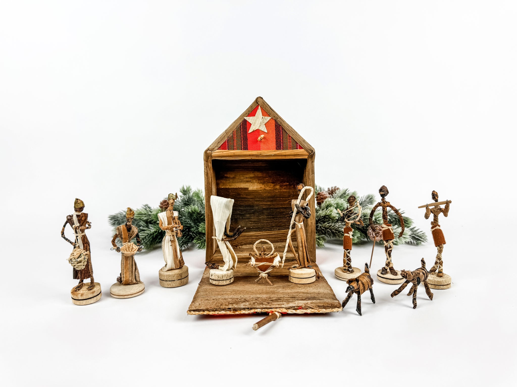 Bring the spirit of Christmas into your home with this handcrafted Nativity set, lovingly made from natural banana leaf fibers. Each figure is carefully shaped and detailed by skilled artisans, transforming humble materials into a meaningful display of faith and tradition. The earthy tones and organic textures create a warm, rustic look—perfect for adding a touch of nature-inspired beauty to your holiday décor. A unique and sustainable keepsake, this Nativity set is not only a celebration of the season but also a tribute to craftsmanship and creativity.