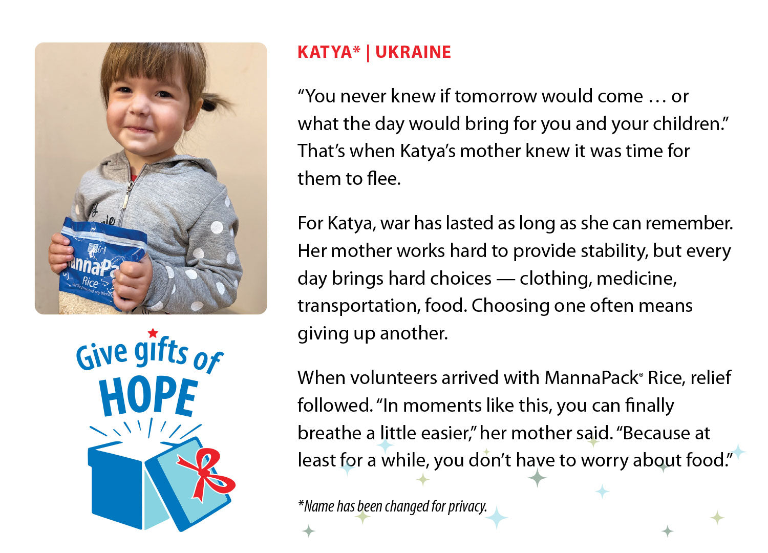 When volunteers arrived with MannaPack® Rice, relief followed. “In moments like this, you can finally breathe a little easier,” her mother said. “Because at least for a while, you don’t have to worry about food.”