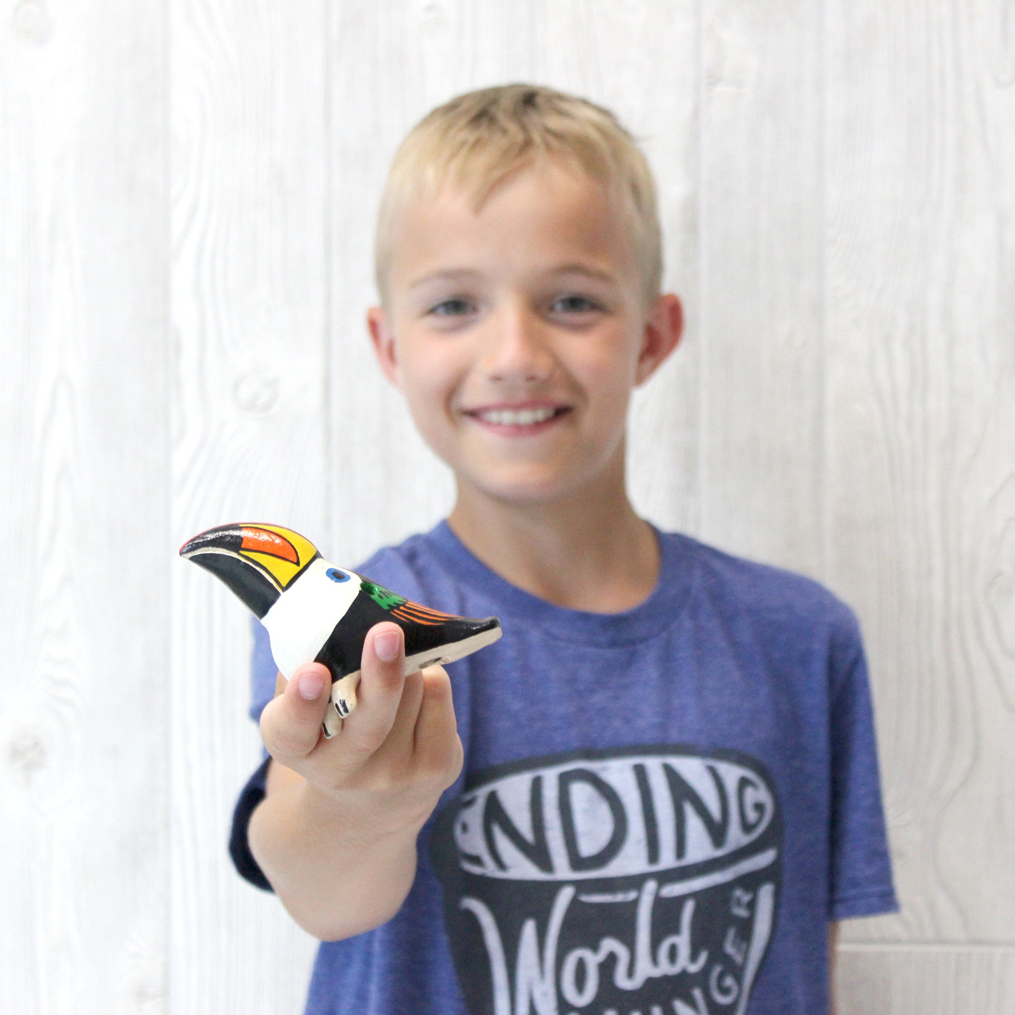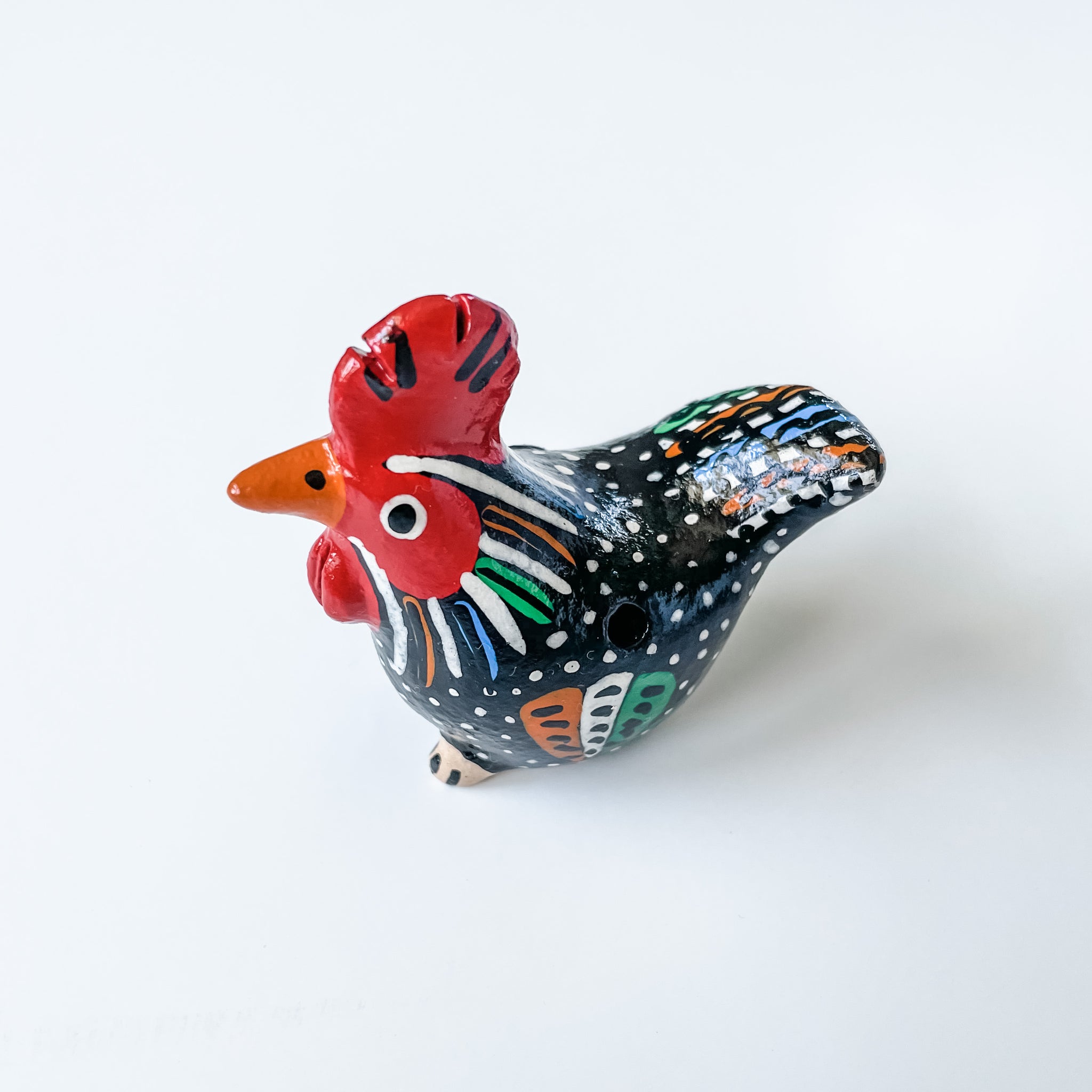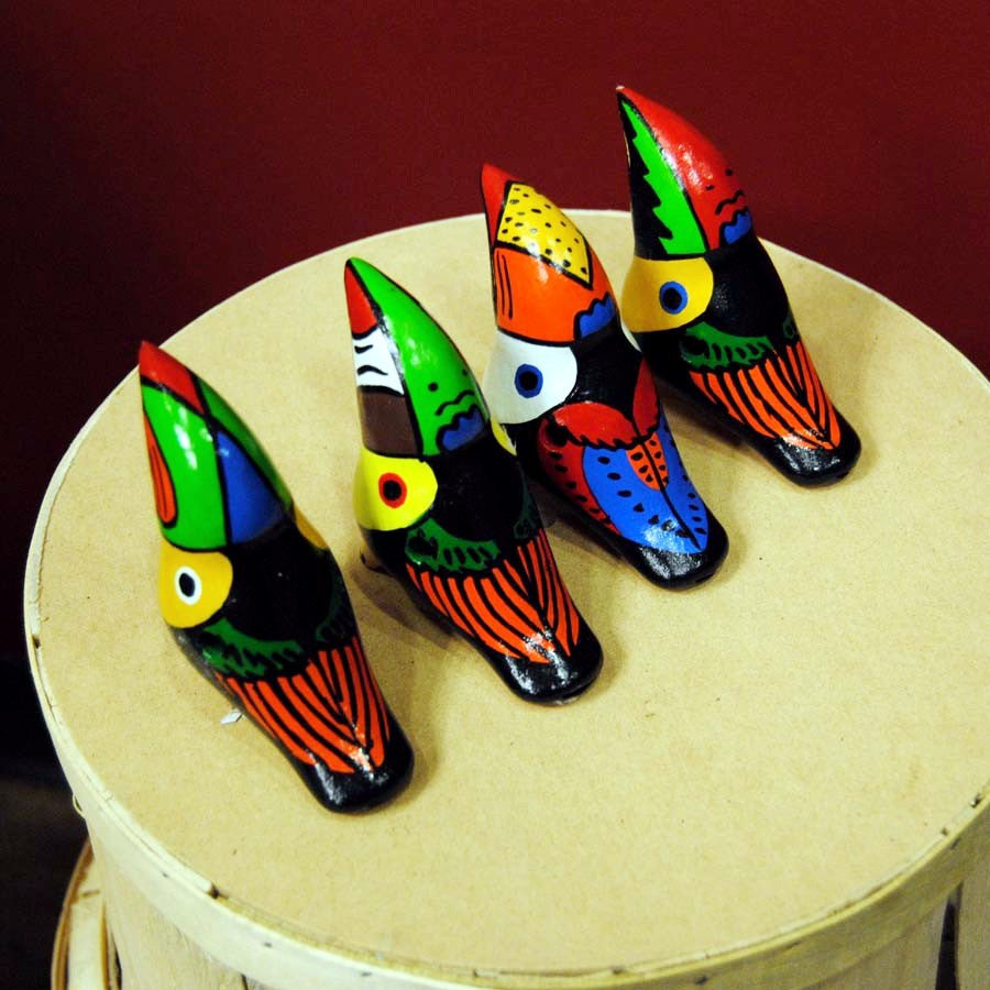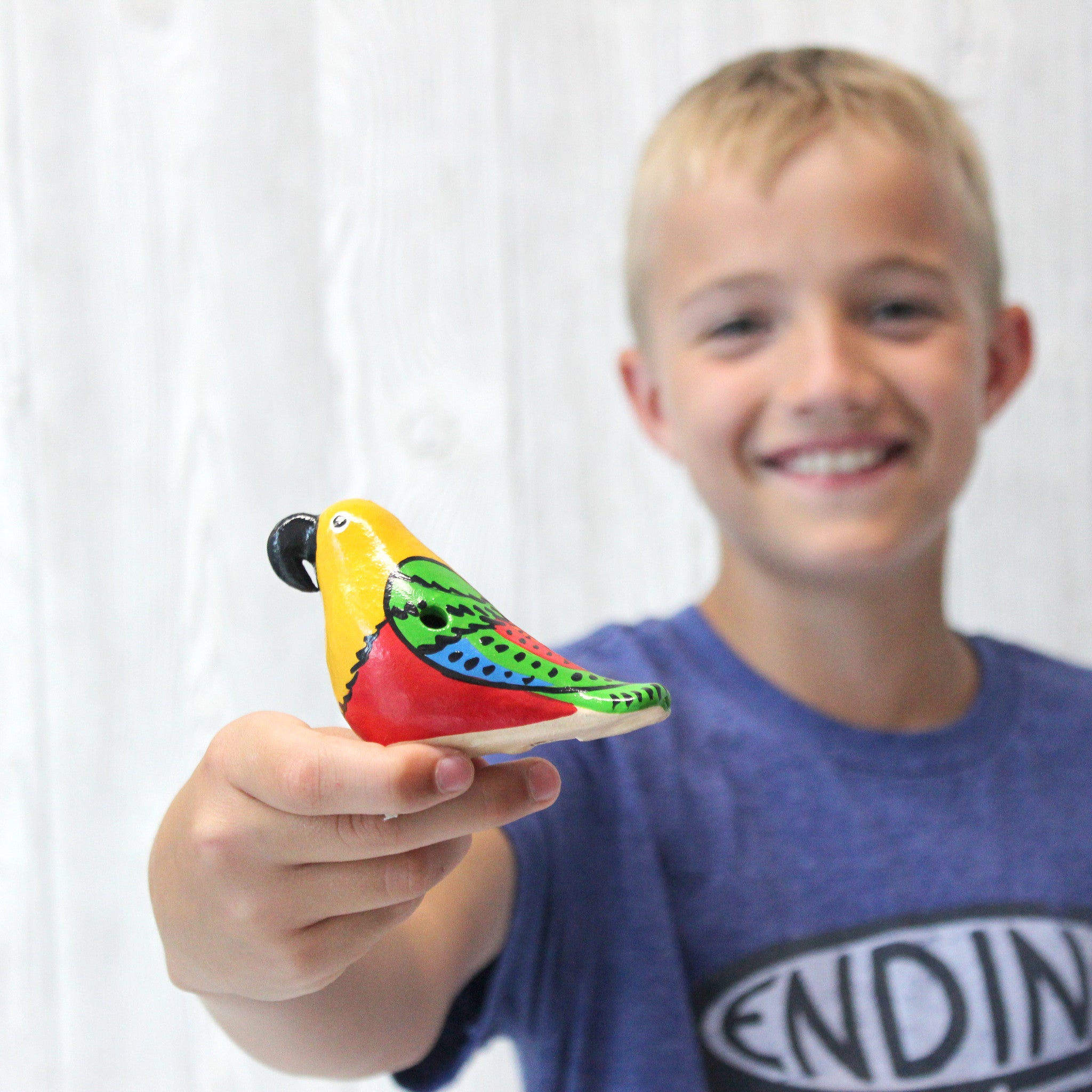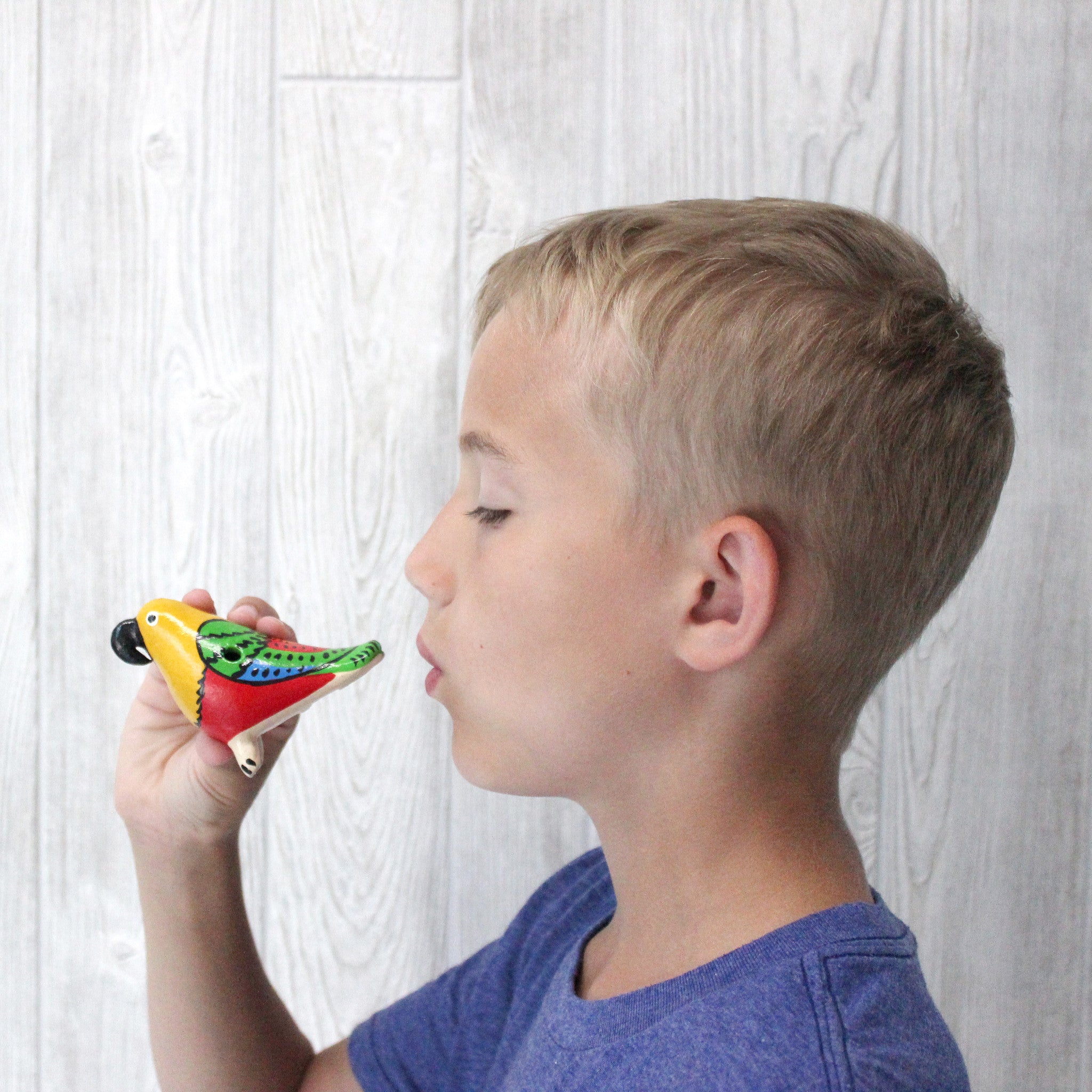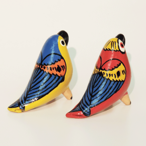 These adorable little bird whistles are handcrafted from clay by William in Nicaragua. Each is uniquely painted in bright, eye-catching colors.