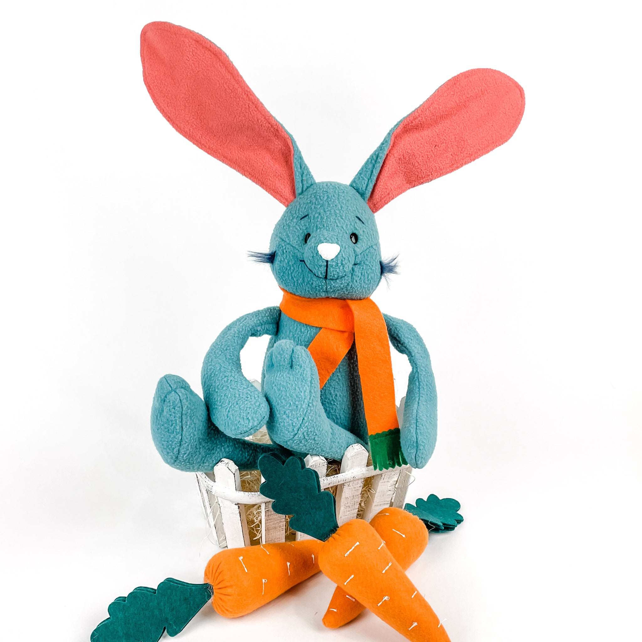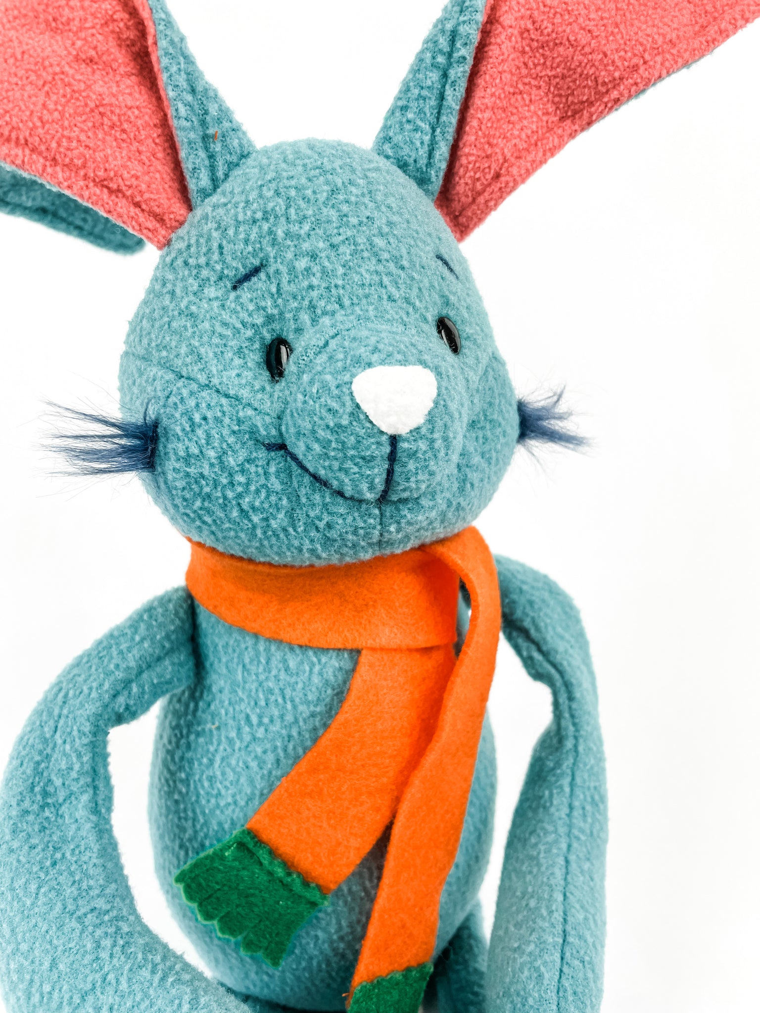 Supersoft and ready for lots of hugs, this plush rabbit has long floppy ears, wears a "carrot" scarf and has the most heartwarming expression.