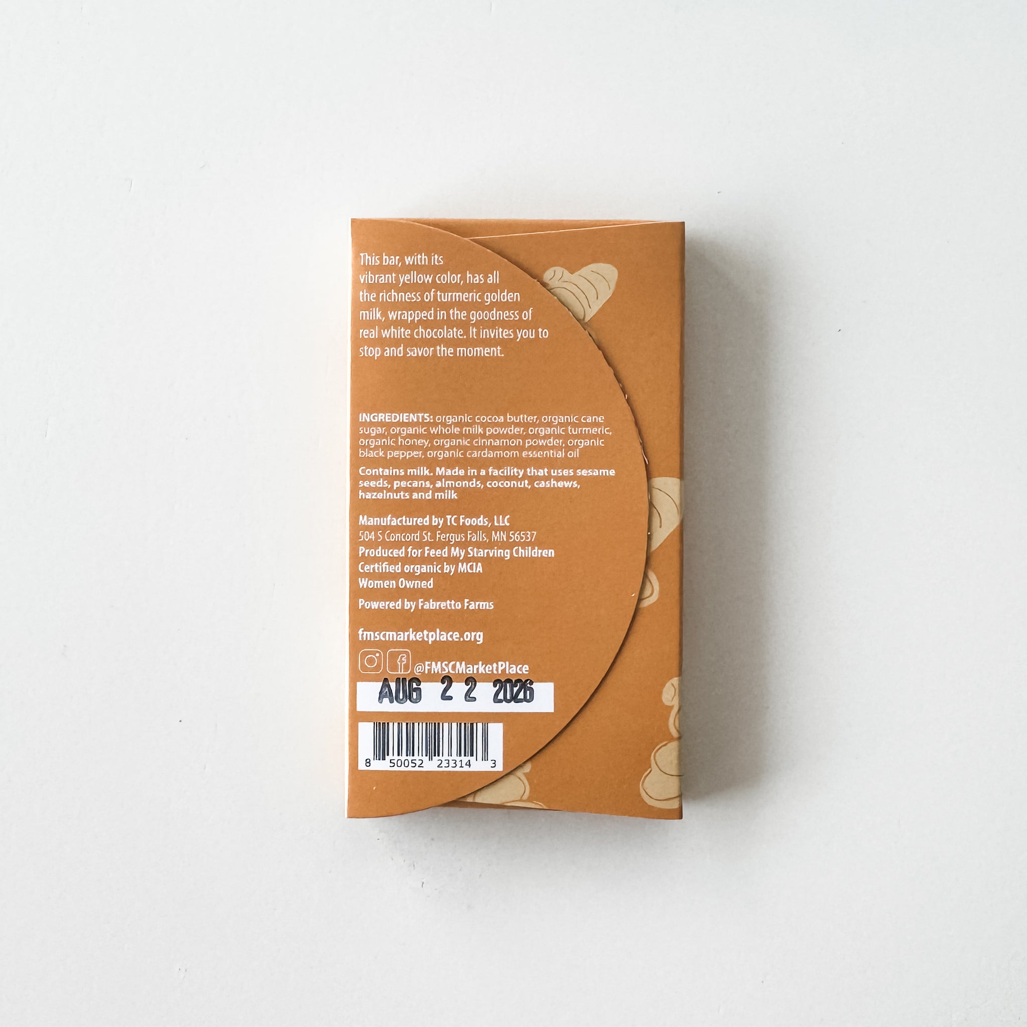 This bar, with its vibrant yellow color, has all the richness of turmeric golden milk, wrapped in the goodness of real white chocolate. It invites you to stop and savor the moment. Ingredients: Organic cocoa butter, organic cane sugar, organic milk powder, organic honey, organic turmeric, organic cinnamon powder, organic black pepper, organic cardamom essential oil