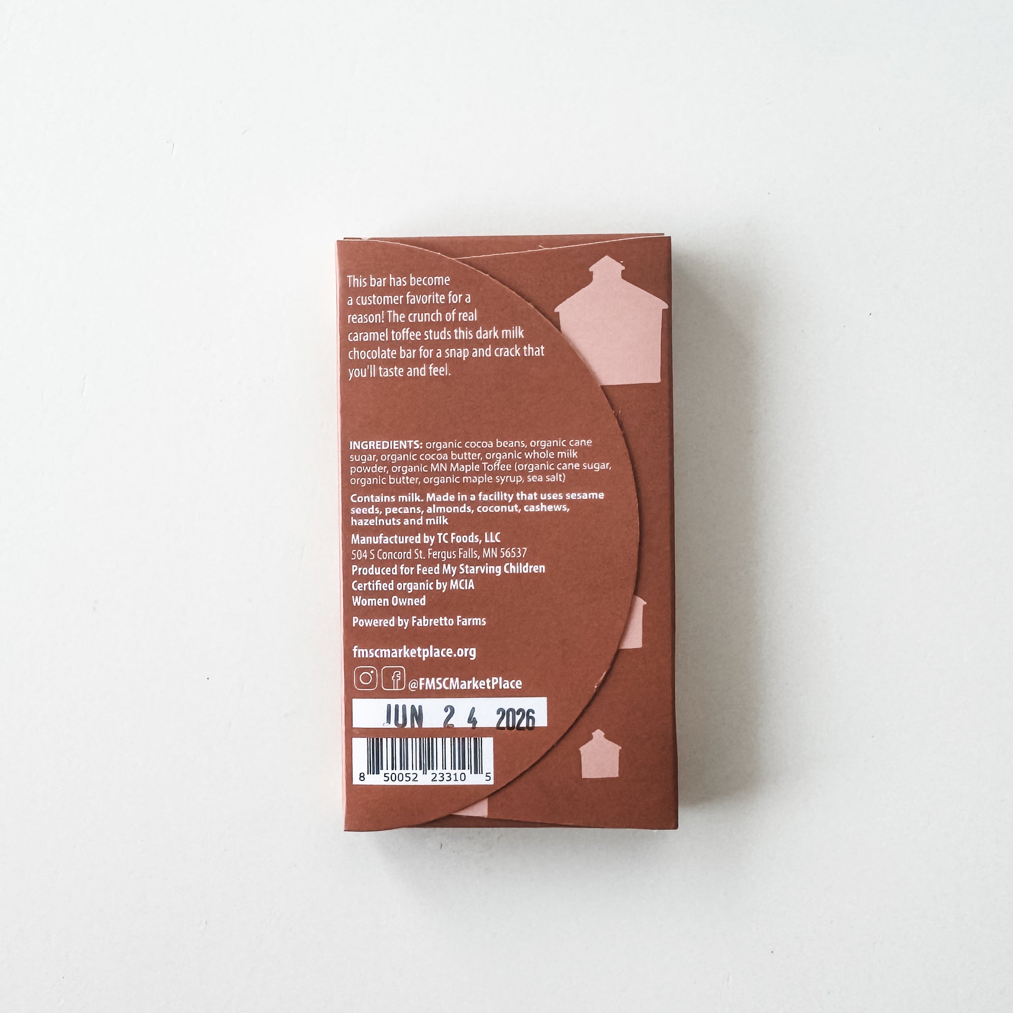 This bar has become a customer favorite for a reason! The crunch of real caramel toffee studs this dark milk chocolate bar for a snap and crack that you'll taste and feel. Ingredients: Organic cocoa beans, organic cane sugar, organic cocoa butter, organic whole milk powder, MN Maple Toffee (organic cane sugar, organic butter, organic maple syrup, sea salt)