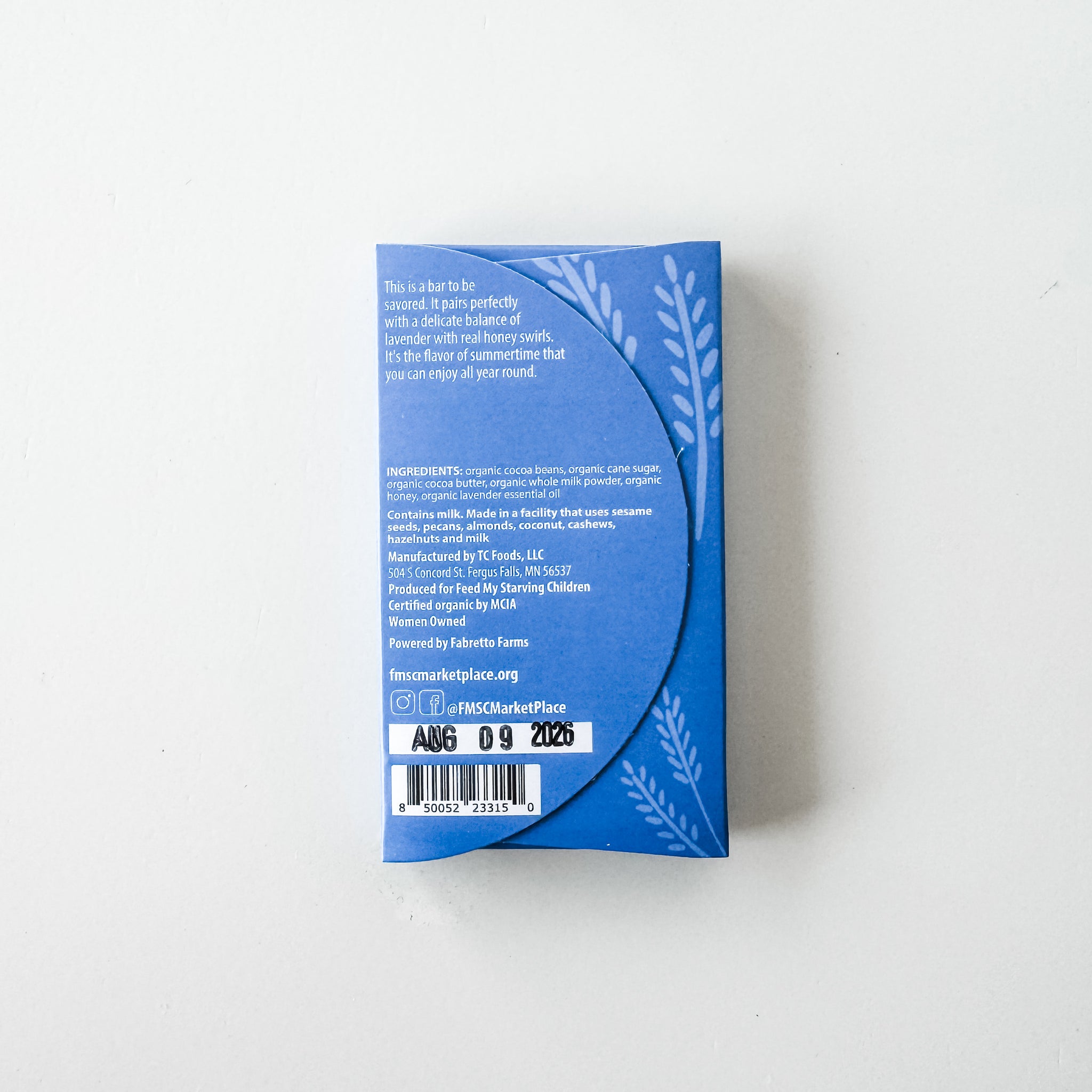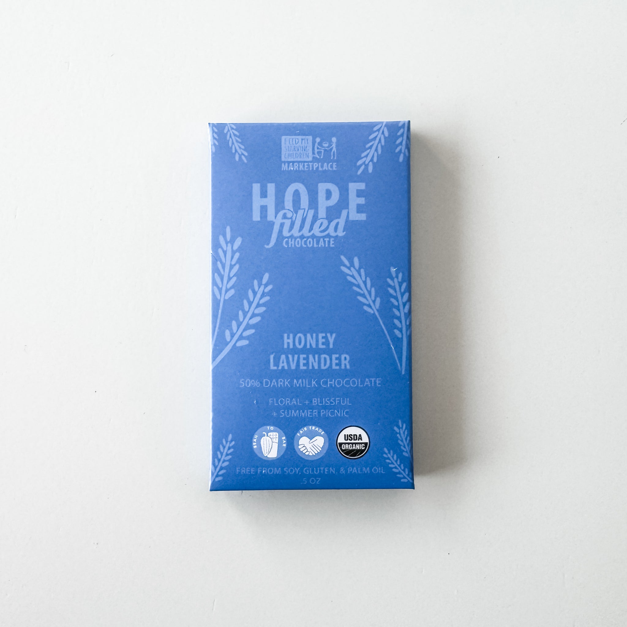 This is a bar to be savored. It perfectly pairs a delicate balance of lavender with real honey swirls. It's the flavor of summertime that you can enjoy all year round. Ingredients: Organic cocoa beans, organic cane sugar, organic cocoa butter, organic milk powder, organic honey, organic lavender essential oil