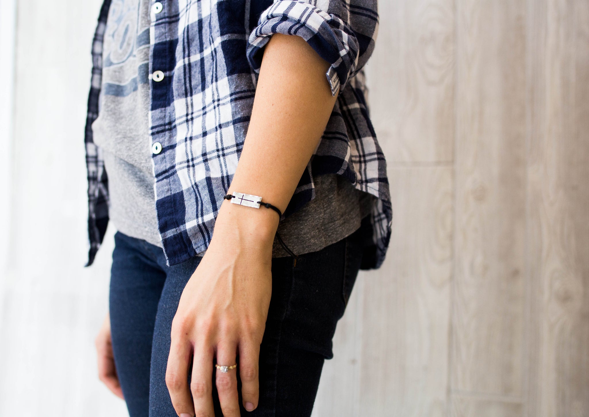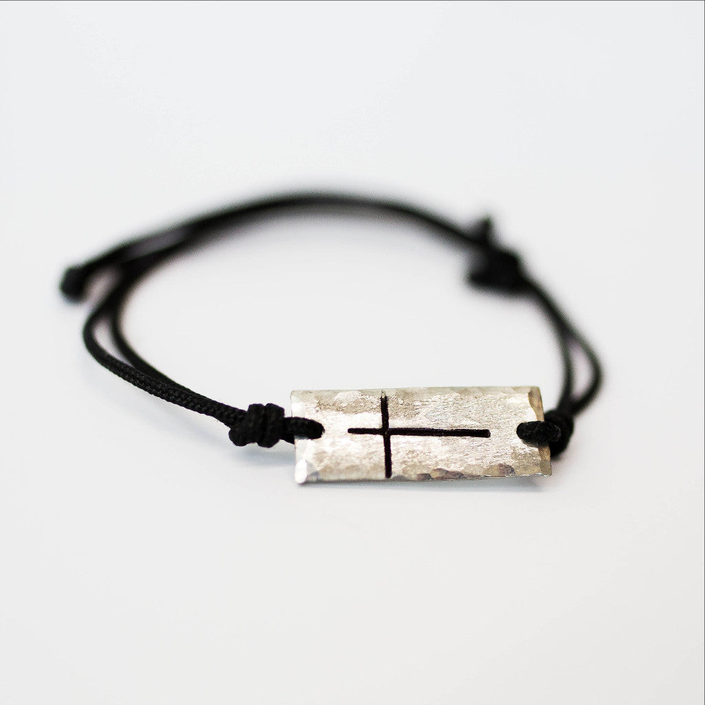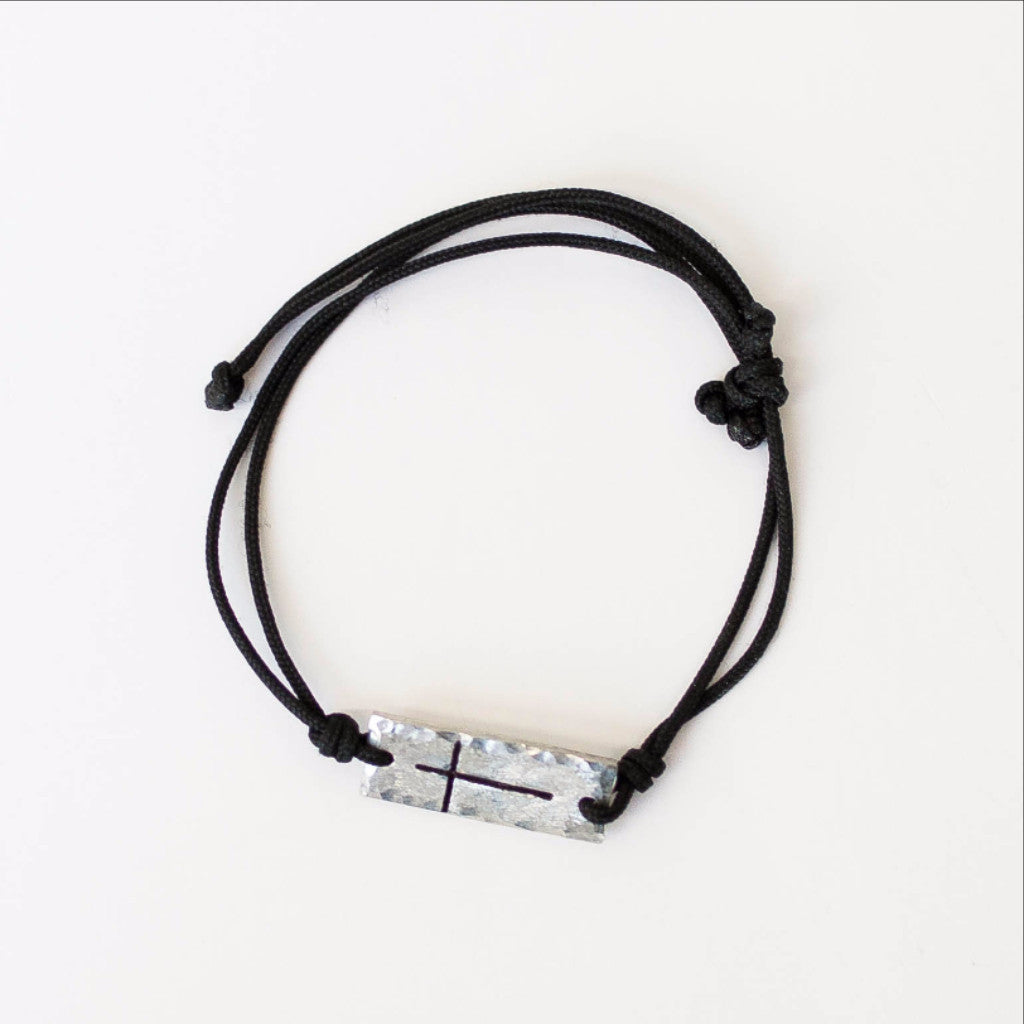 This handmade unisex Pewter Cross Bracelet is the perfect everyday bracelet. It features a pewter tag that is hand-stamped with a cross. The black cord is adjustable and easy to get on and off. These bracelets are handmade by the Khutsala Artisans, providing fair-wage employment in Eswatini where the unemployment rate is 70%.