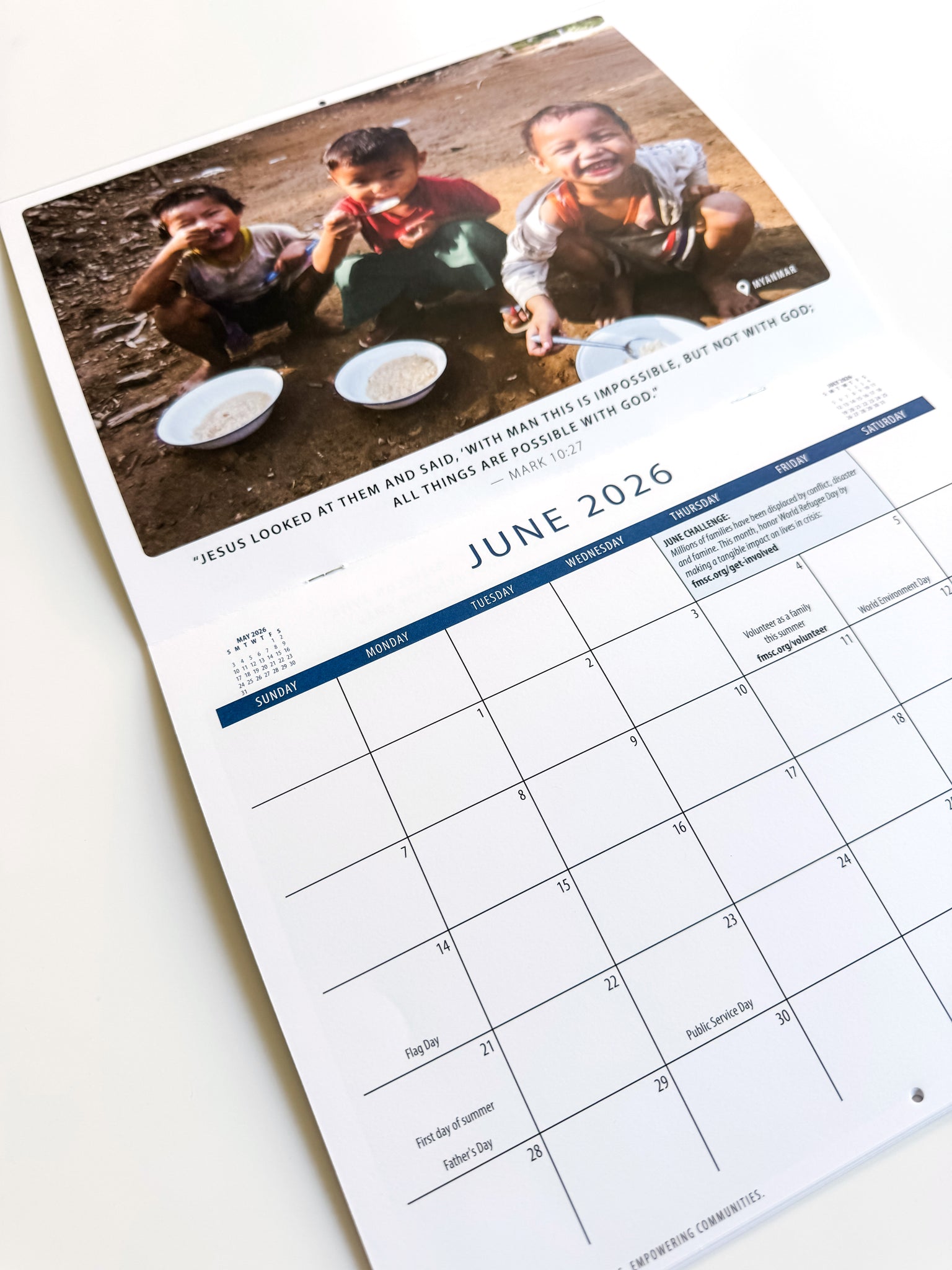 Hang this calendar in your home, office or on your refrigerator to remain mindful of the children whom you have fed with your time and donations, while also remembering the children we can continue to help throughout the next year.