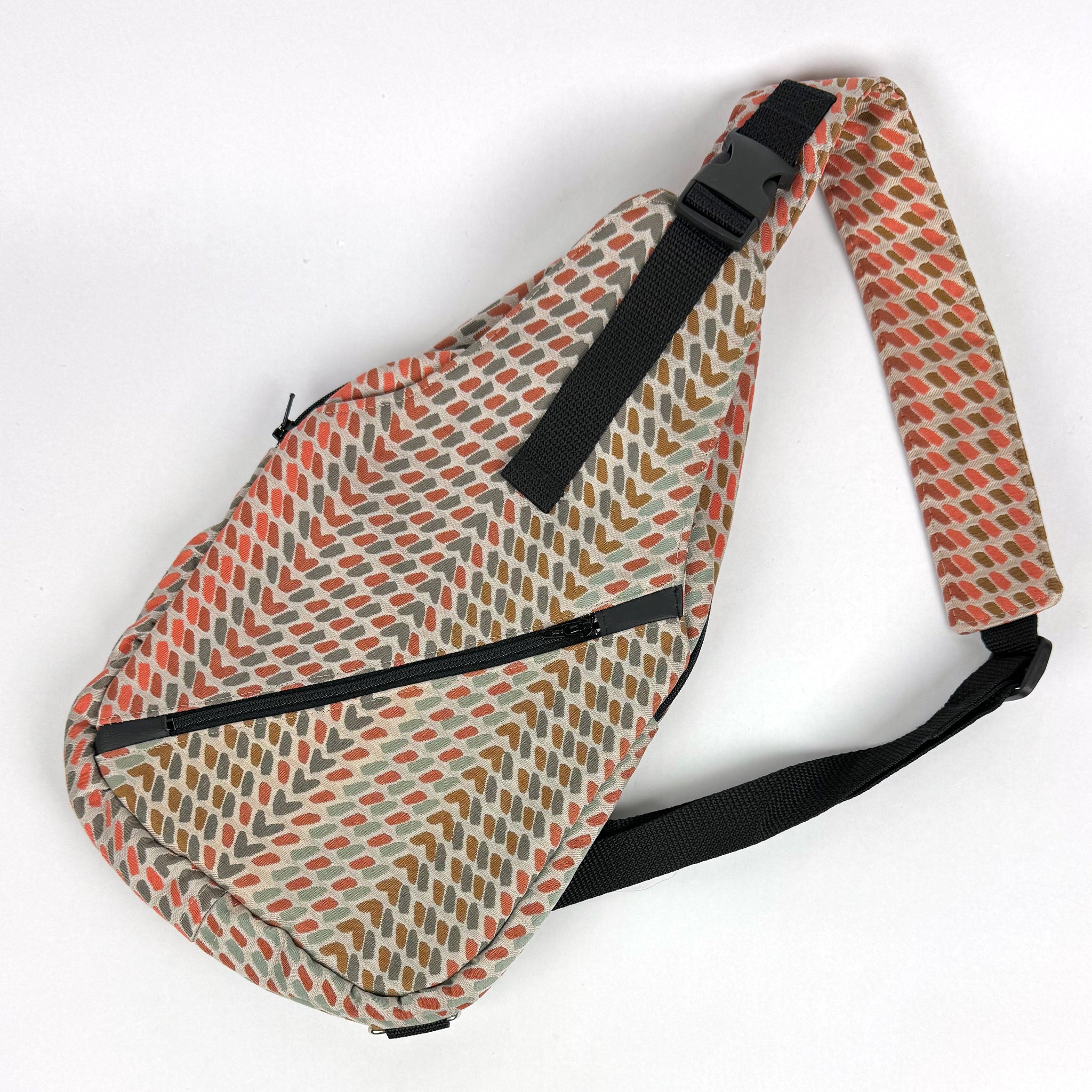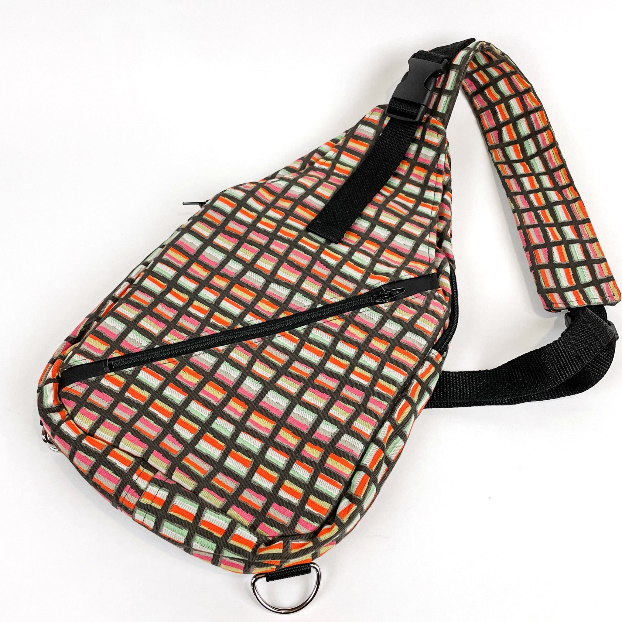 Whether you are running to the store or setting off on an adventure, the sling bag is your perfect, practical new partner. With multiple easily accessible pockets and a variety of ways to wear it, this versatile bag will keep you fashionable and organized. As an added bonus, you can even clip your keys, water bottle, ID, or anything else you need readily accessible to the bottom!