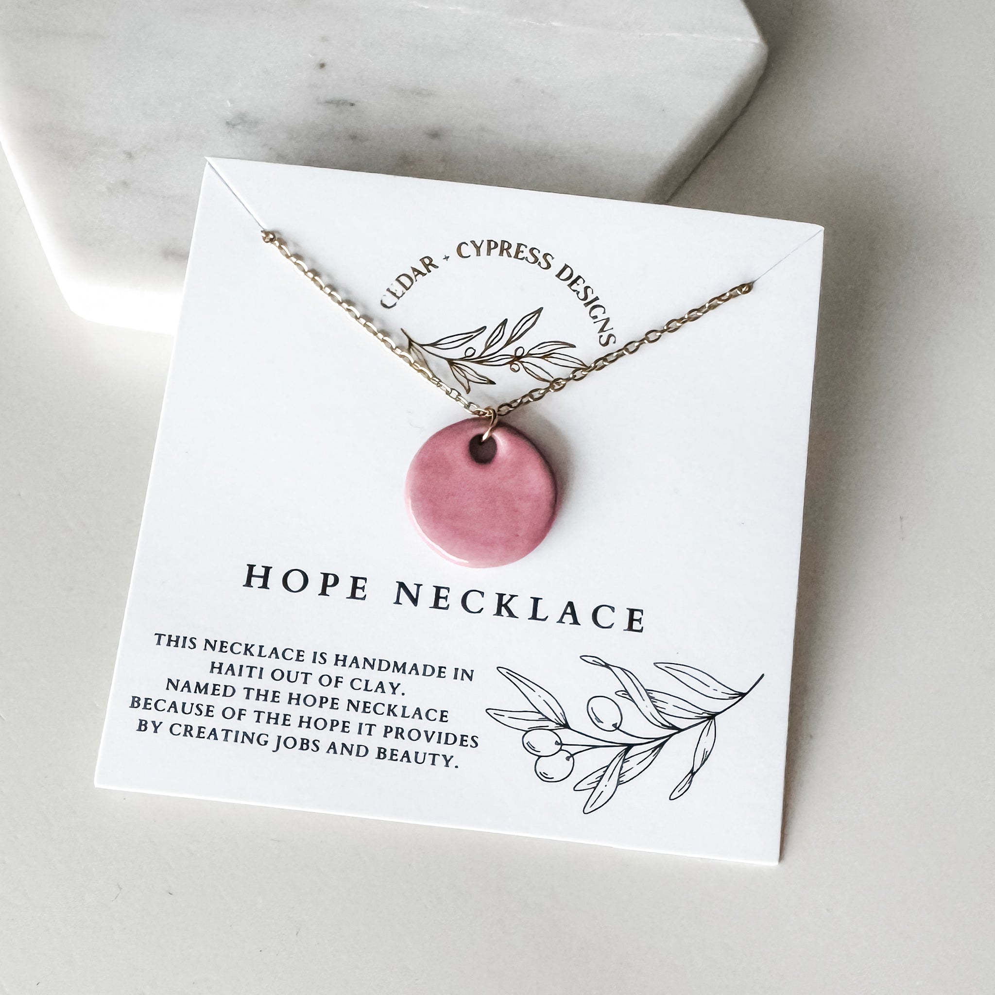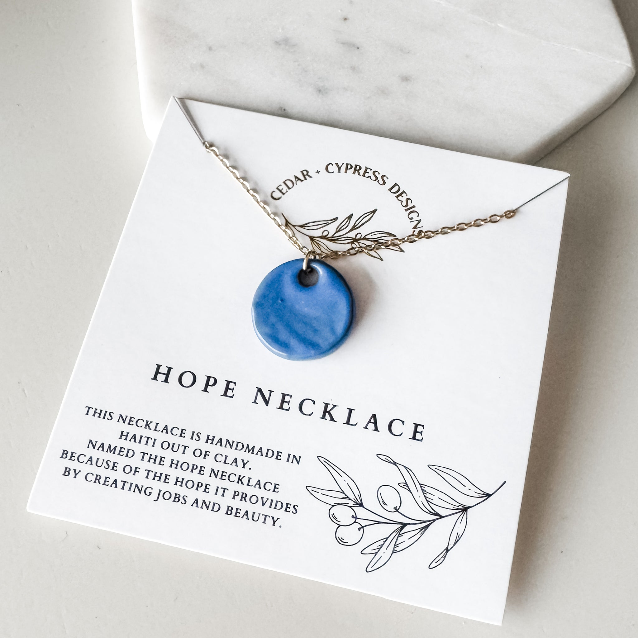 We absolutely love the new Hope Necklace! Made in Haiti out of handmade ceramic, it is truly a unique gift item. It is named the HOPE necklace because of the hope it provides by creating jobs and beauty in Haiti.