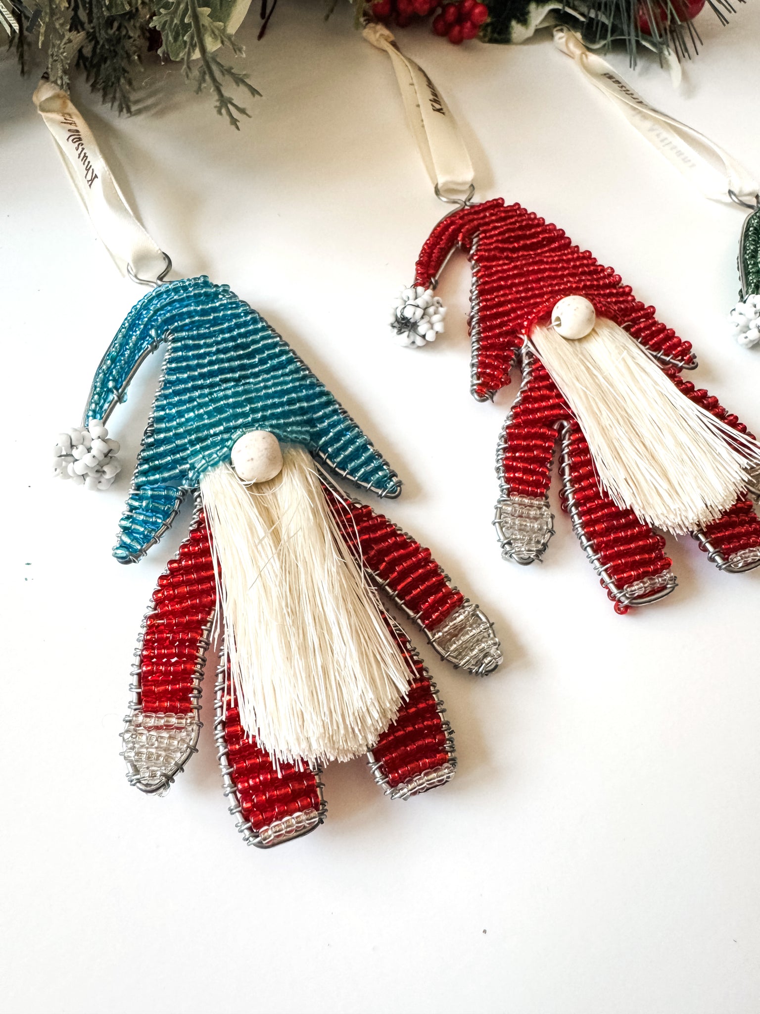 This holiday season, bring some joy into your home with this artisan-crafted beaded gnome ornament from Eswatini. Hand-beaded with intricate attention to detail, the gnome features a sisal beard and a festive design that will bring your holiday decorations to the next level.