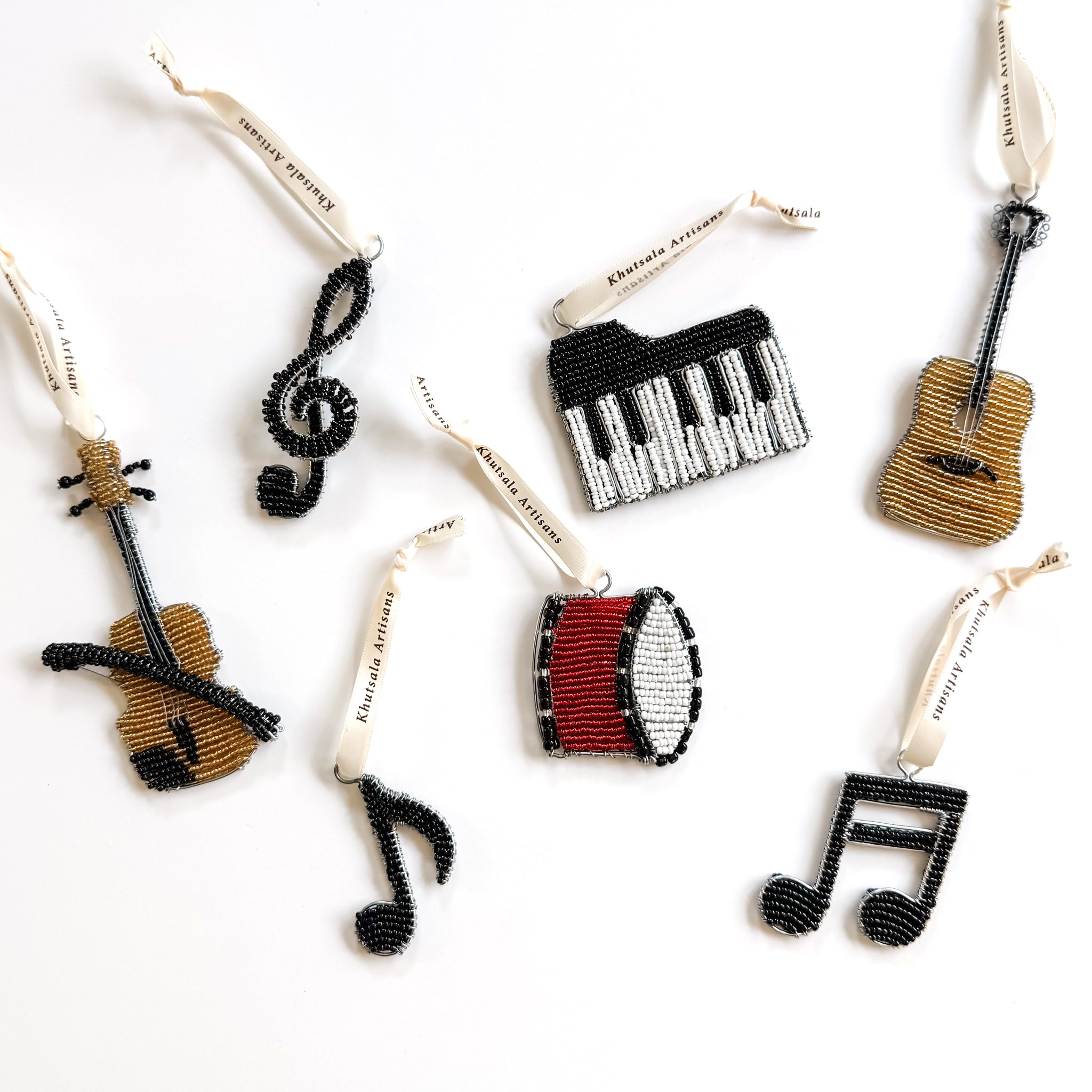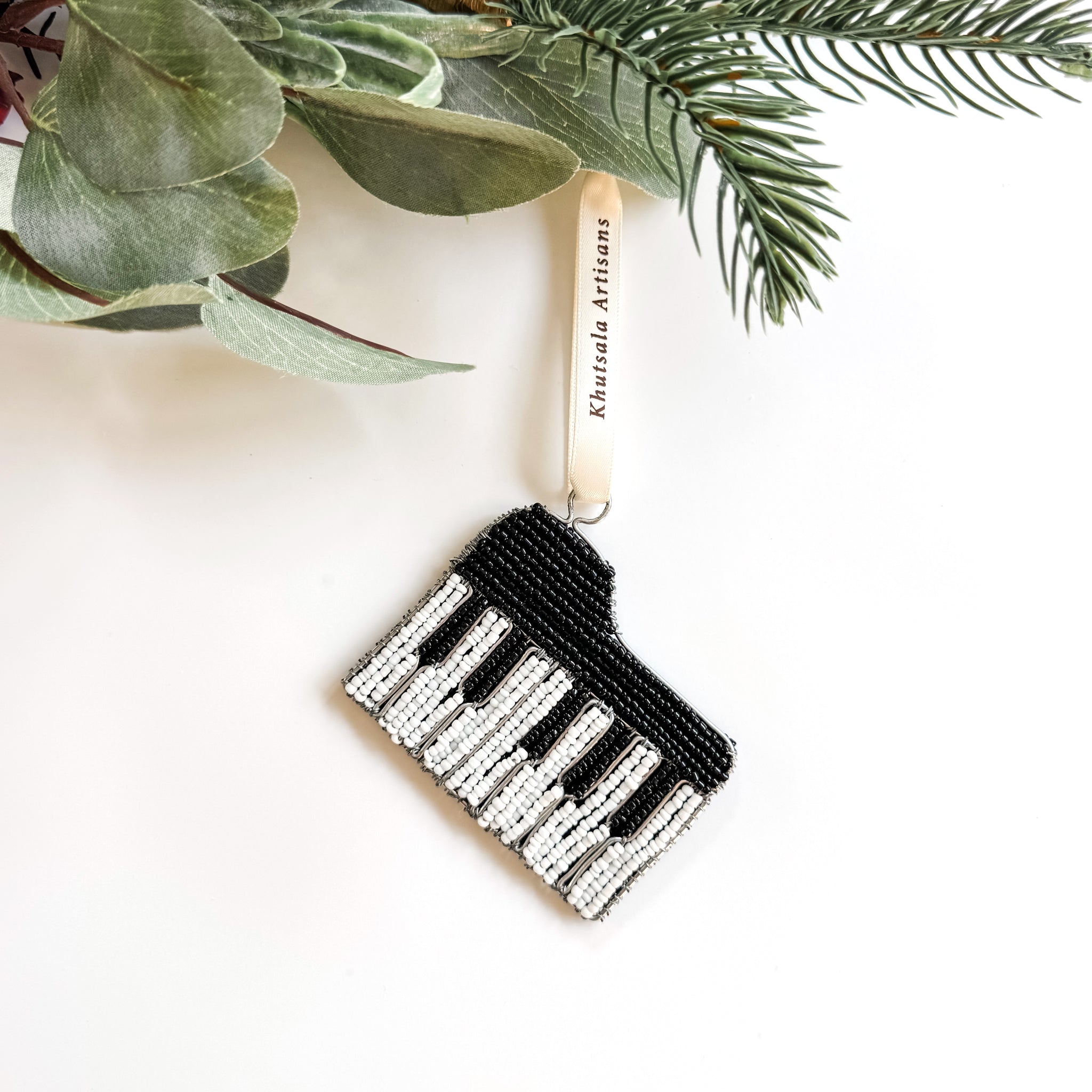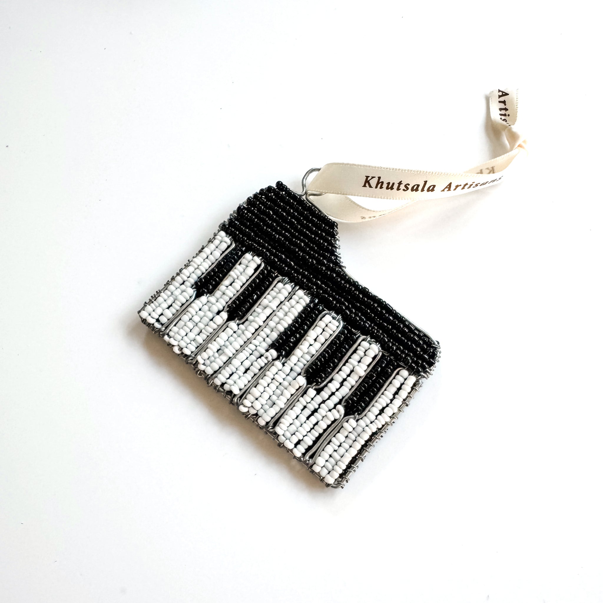 Add a touch of musical charm to your holiday décor with this Beaded Keyboard Ornament, handcrafted in Eswatini. Each piece is carefully made bead by bead, creating a striking black-and-white design that captures the timeless beauty of the piano keys. Lightweight and full of character, this ornament makes a perfect gift for music lovers and a meaningful way to support artisans who create with skill and care.