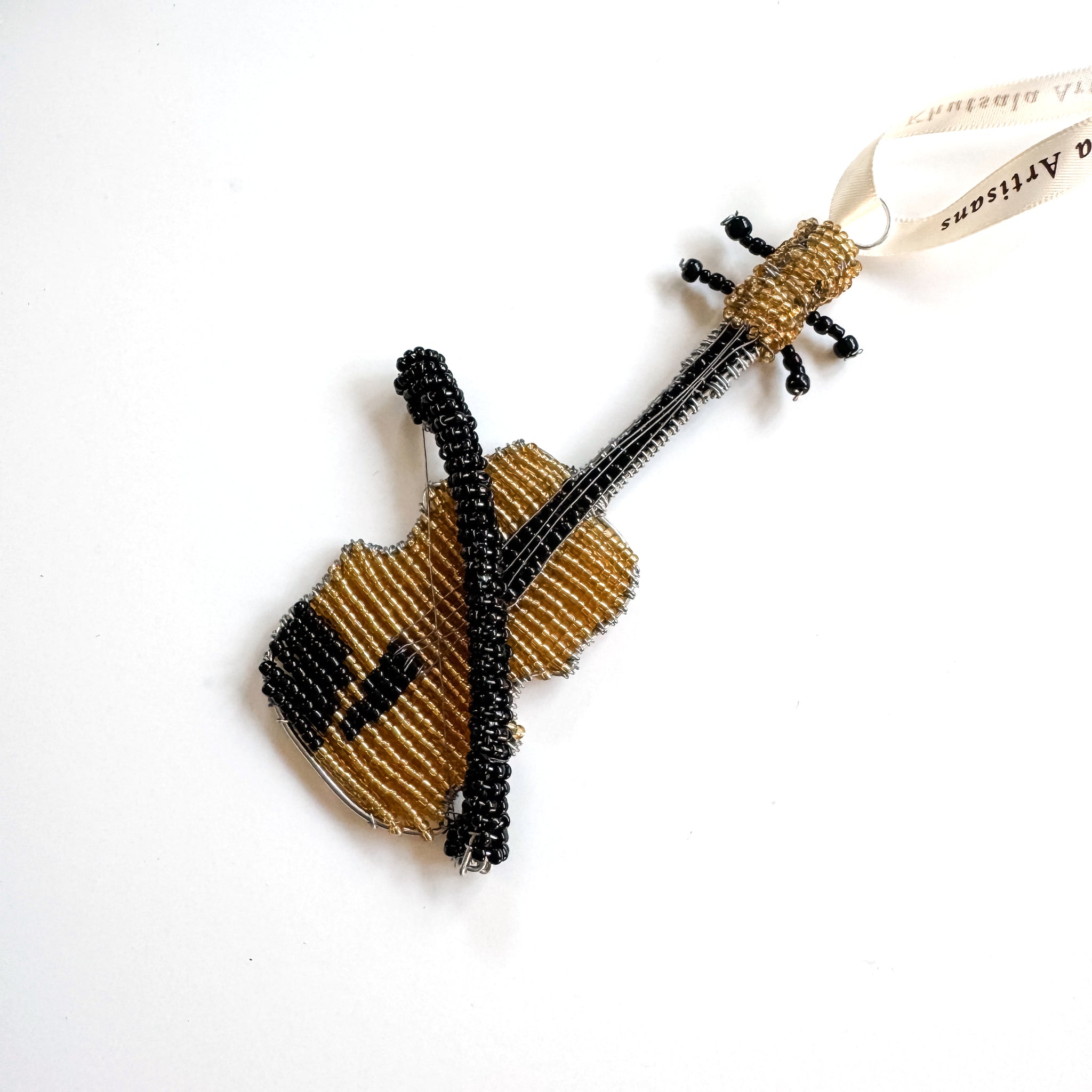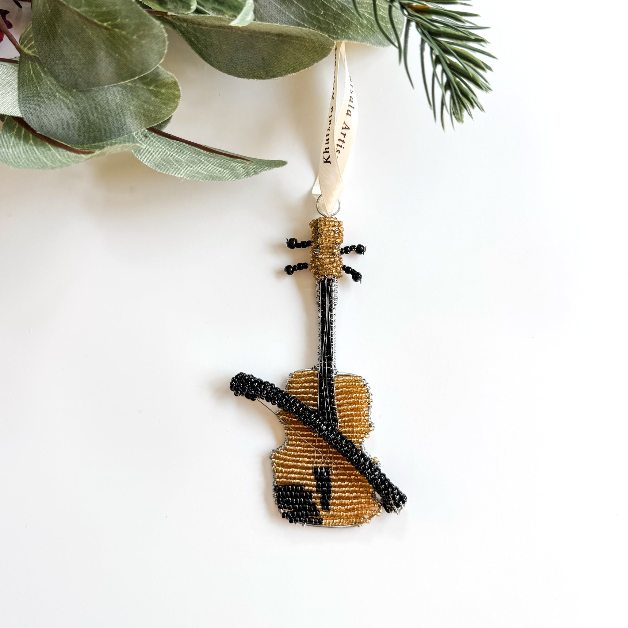 Celebrate the beauty of music with this handcrafted beaded violin ornament from Eswatini. Each piece is meticulously shaped and detailed bead by bead by the Khutsala artisans, showcasing their incredible skill and creativity. With its elegant design and sparkling texture, this ornament is a perfect gift for musicians and music lovers, bringing both artistry and festive charm to any holiday tree.