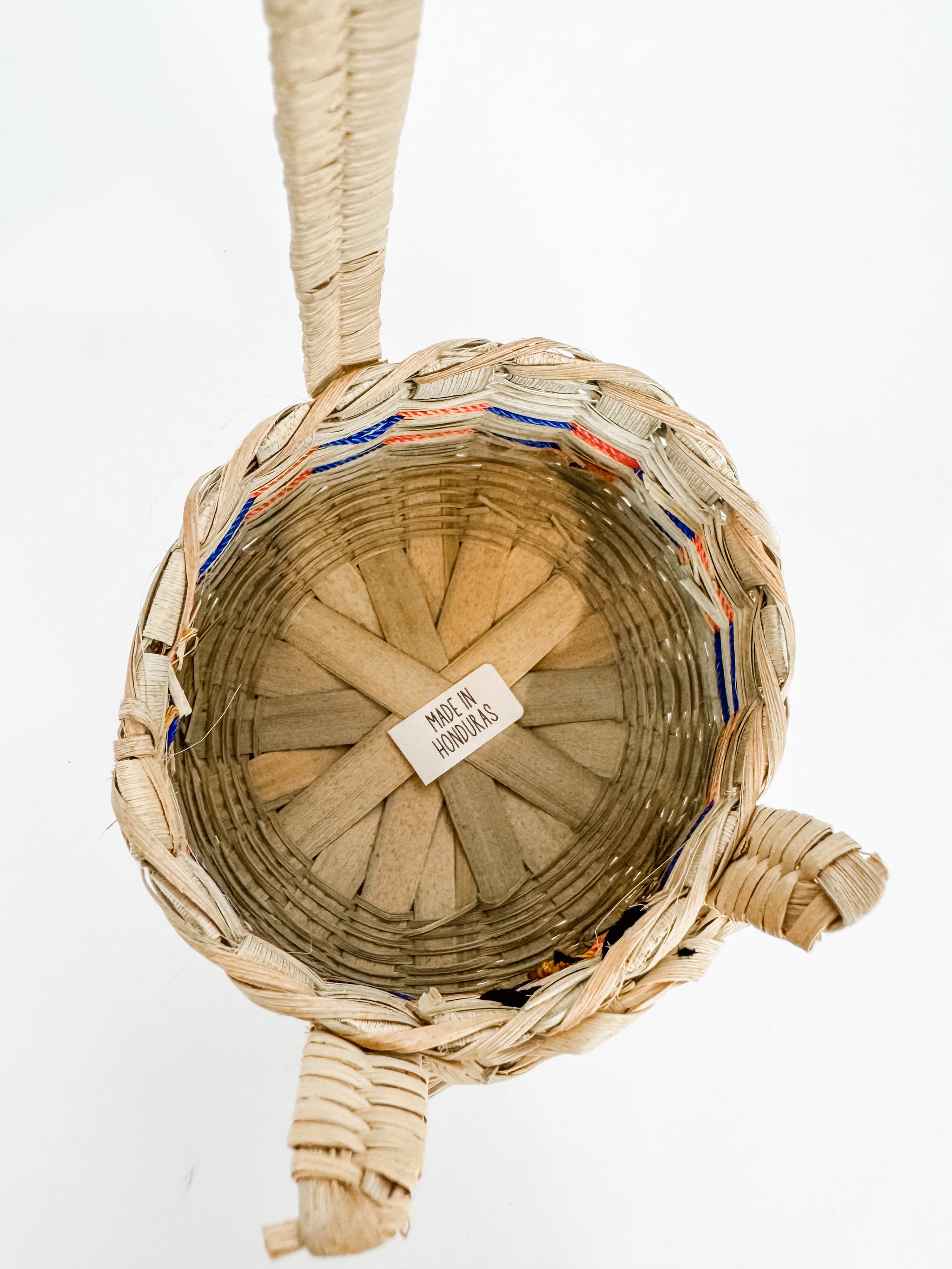 The Women of San Juan are part of an indigenous group in Honduras called the Tolupanes and come from the San Juan tribe. They live in a remote area called Montana De La Flor. Weaving is a handicraft that has been passed down through many generations. The suyate leaves used to make the baskets grows in the higher altitudes of Montana De La Flor and the women walk for several hours to pick it. It then has to be laid out to dry before being used to create the dragonflies.