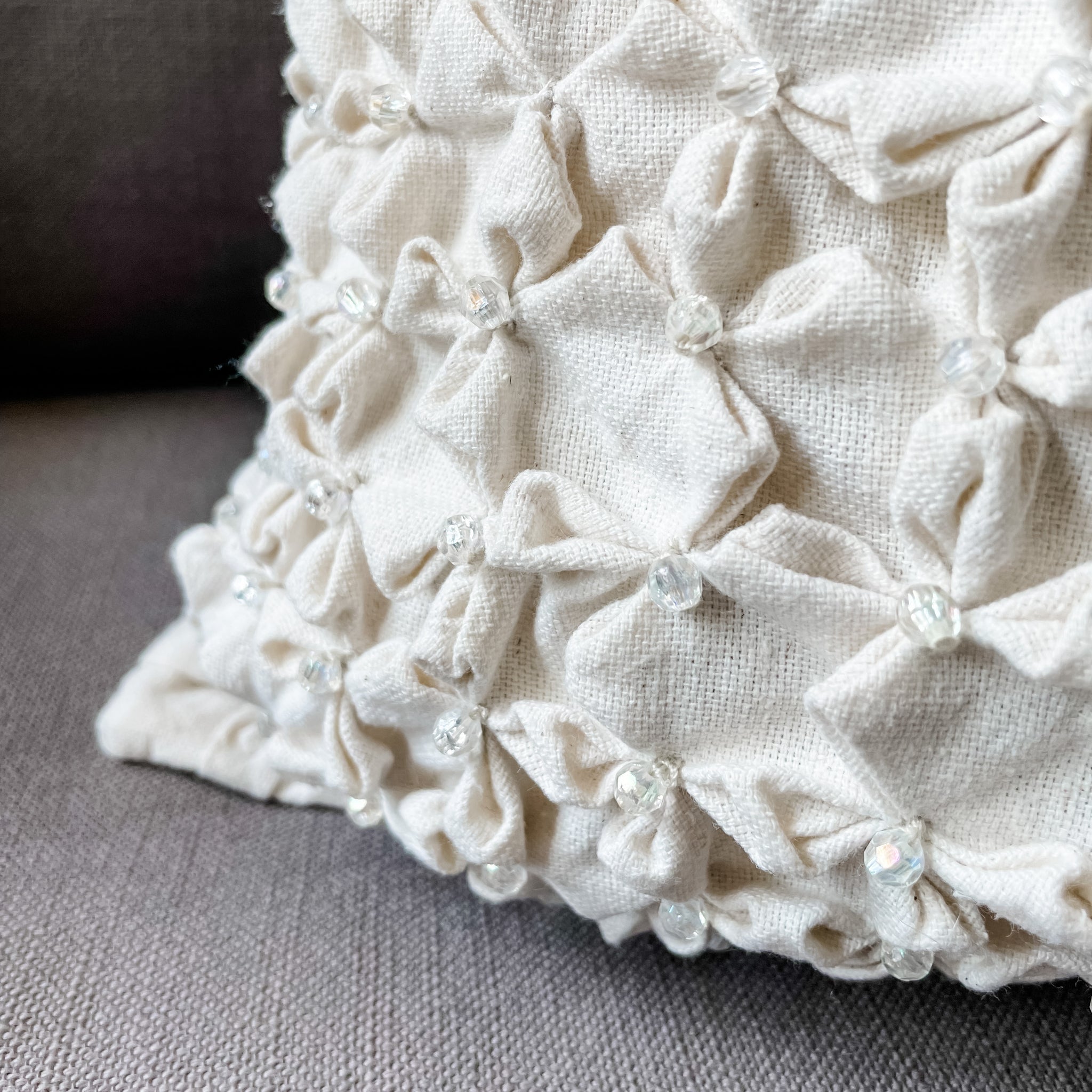 Meet your new favorite pillow cover. Celebrate your unique style with the fashionable flair of this textured pillow, handcrafted by artisans at the Red Rope Cooperative, a initiative of FMSC food partner International Care Ministries in the Philippines. This delightful accent pillow is an exquisite combination of elegance and whimsy. Wherever you place it, you're sure to enjoy it's casual charm and eye-catching embellishments.