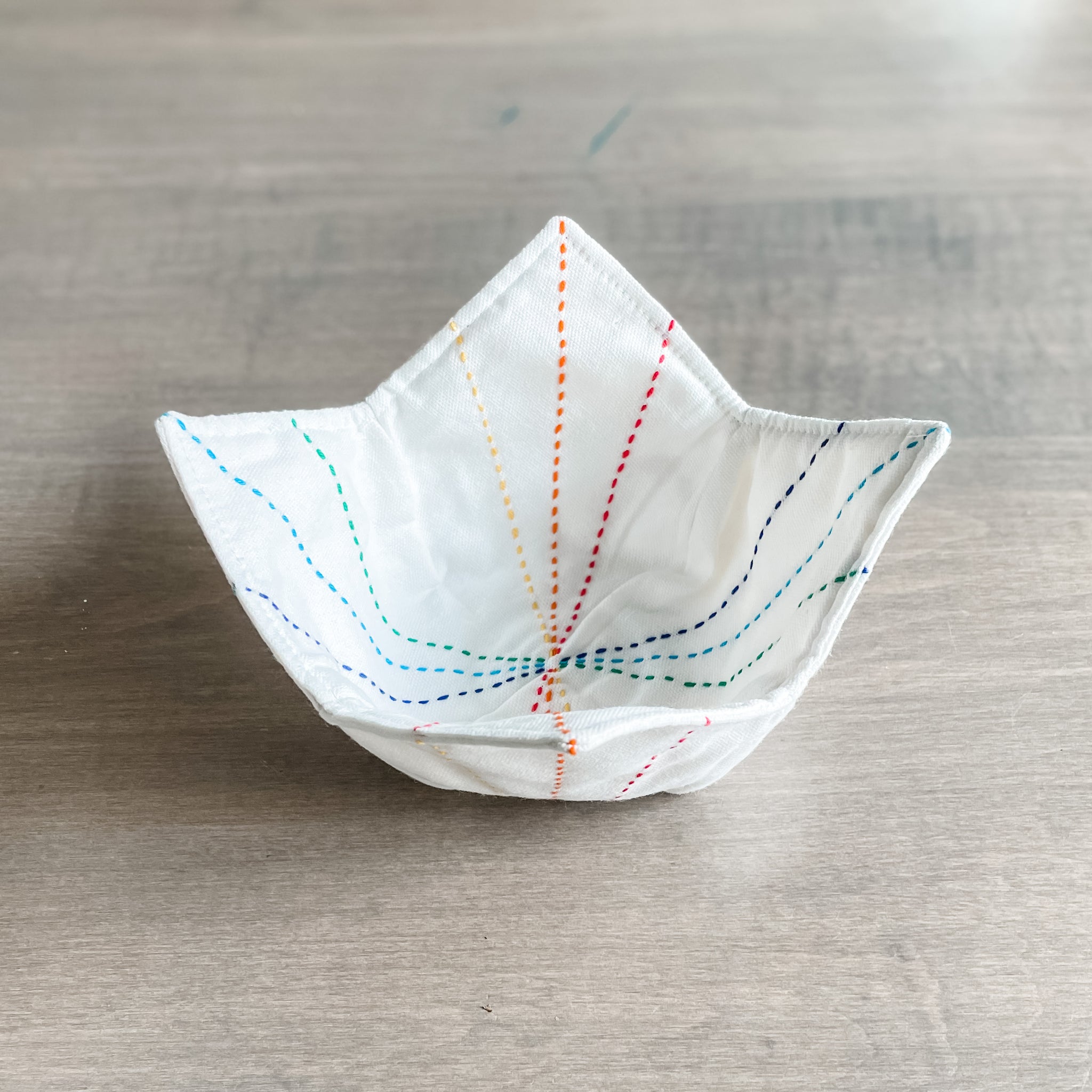 Each bowl cozy is hand-stitched by artisans at the Red Rope Cooperative, a initiative of FMSC food partner International Care Ministries in the Philippines.