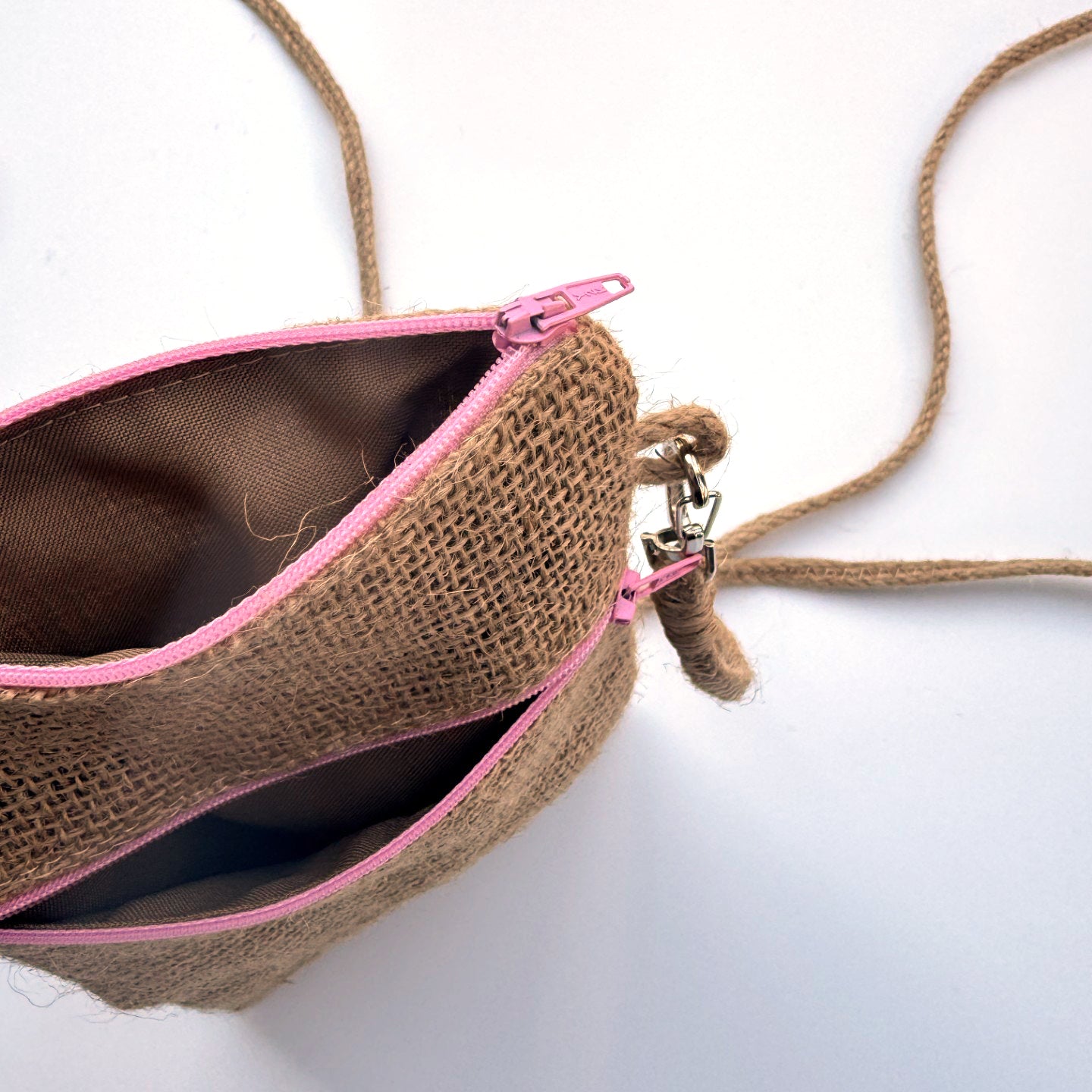 Beautifully handcrafted and hand-painted in the Dominican Republic, this fully-lined jute bag is a one-of-a-kind accessory perfect for carrying essentials while making a unique fashion statement. Made with durable jute material, it is both environmentally friendly and stylish.