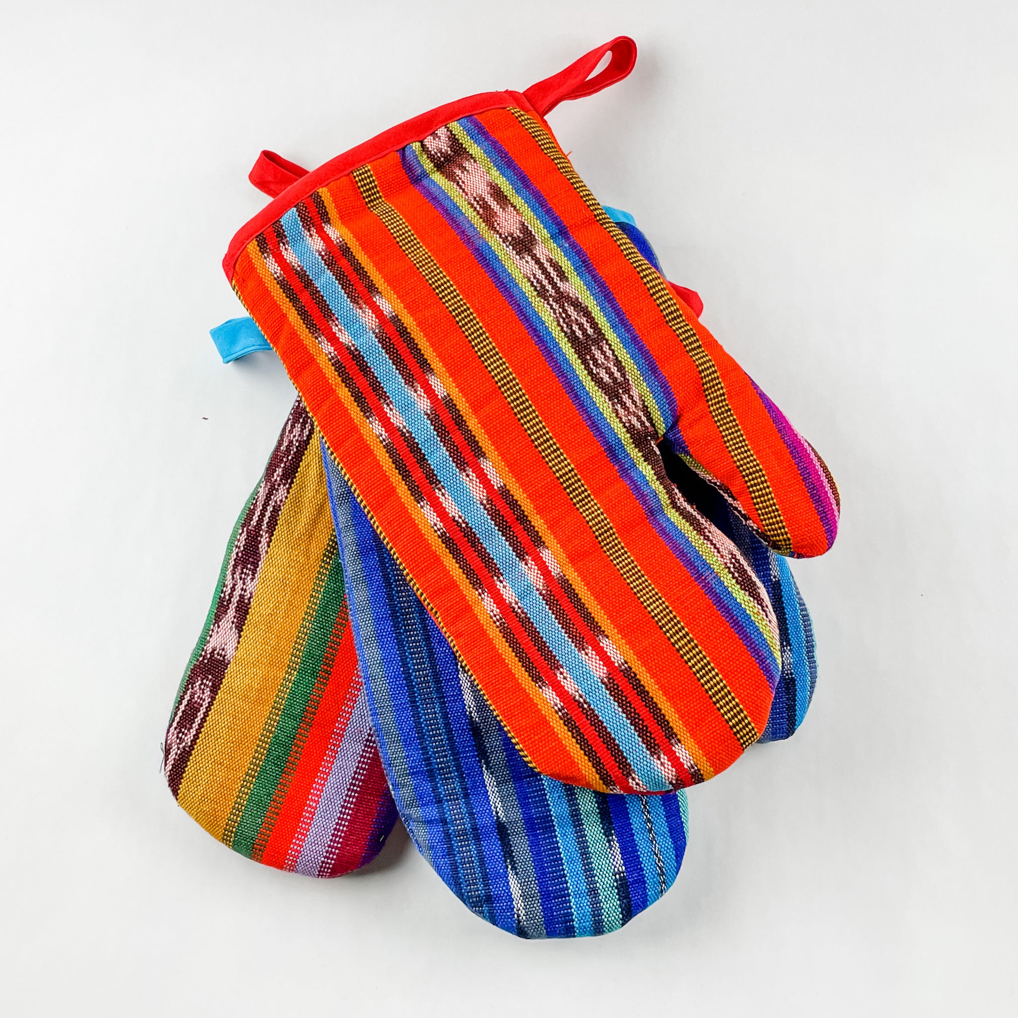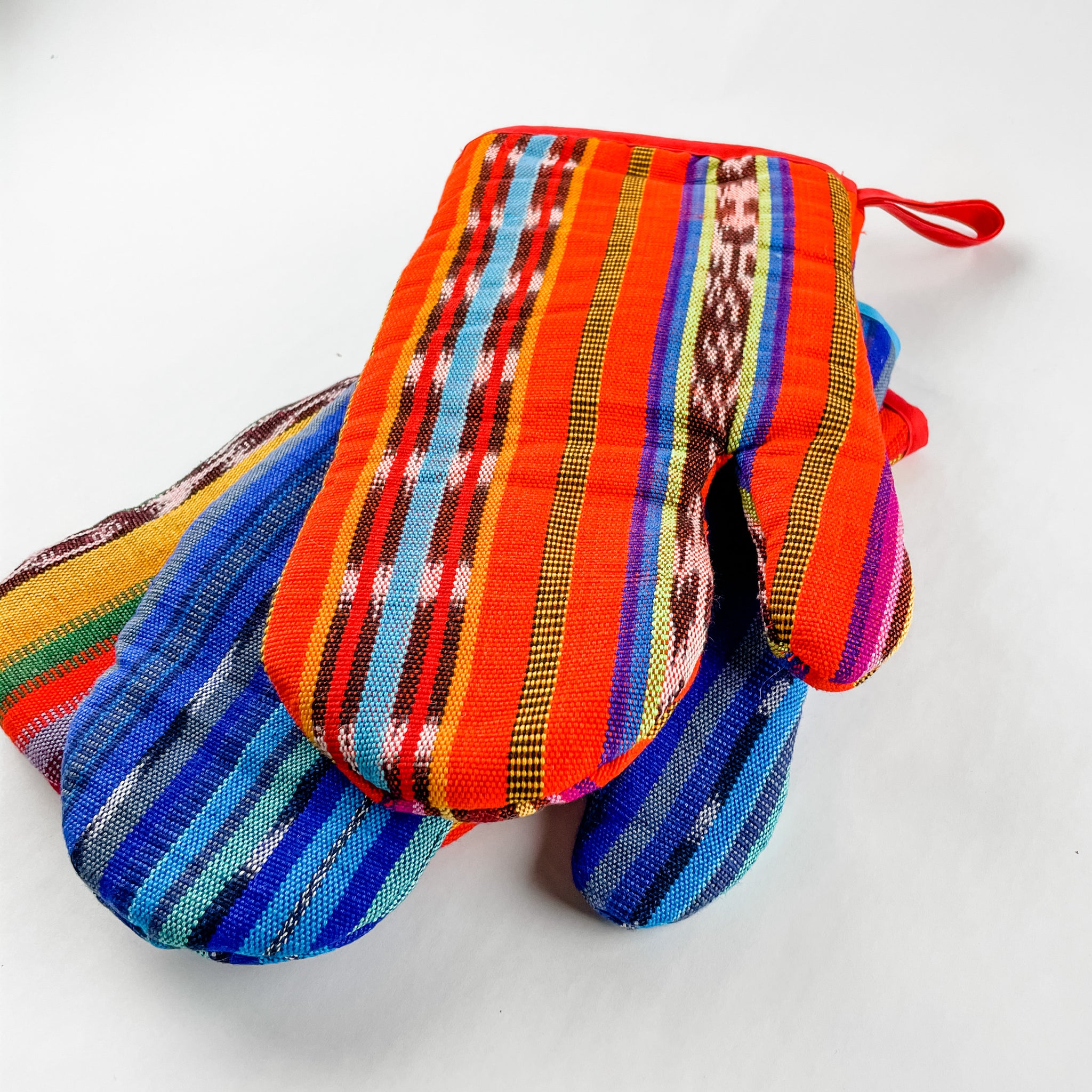 Always stay protected while working in the kitchen with this oven mitt, handmade by artisans at FMSC MarketPlace partner, Believe Guatemala. The quality construction ensures your hands stay protected from a hot oven or grill, as well as while holding heated pots or pans. Featuring bright colors and fun designs, they're sure to bring appeal to your kitchen decor. A great gift for the baker, cook, or grillmaster in your life!
