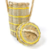 Each basket is meticulously woven by hand by The Women of San Juan. These artisans are part of an indigenous group in Honduras called the Tolupanes and come from the San Juan tribe. They live in a remote area called Montana De La Flor. Basket weaving is a handicraft that has been passed down through many generations. The suyate leaves used to make the baskets grows in the higher altitudes of Montana De La Flor and the artisans walk for several hours to pick it. It then has to be laid out to dry before being used to create the baskets.