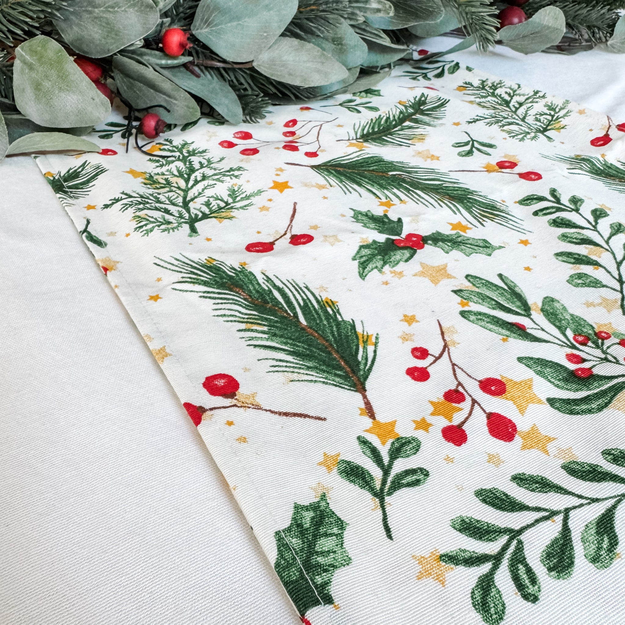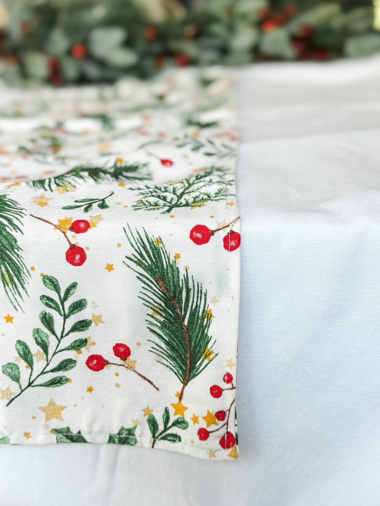 This beautiful floral table runner serves as the perfect base for special holiday meals and will complement any centerpiece you set out. The festive, joyful pattern is the perfect addition to your table for the season. Pair with the coordinating placemats to complete the look.