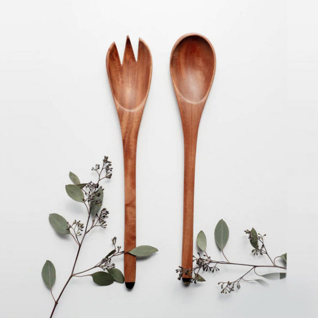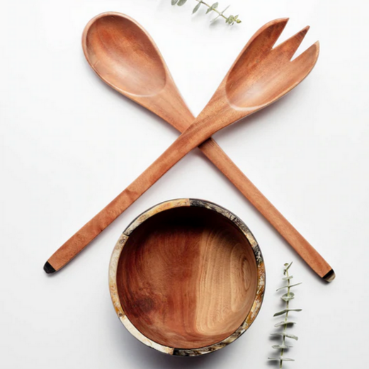 Each pair of servers is handcrafted using Haitian-sourced horn and wood. All horn used is ethically sourced in-country as a by-product of food. Each piece is one of a kind due to the nature of the materials.