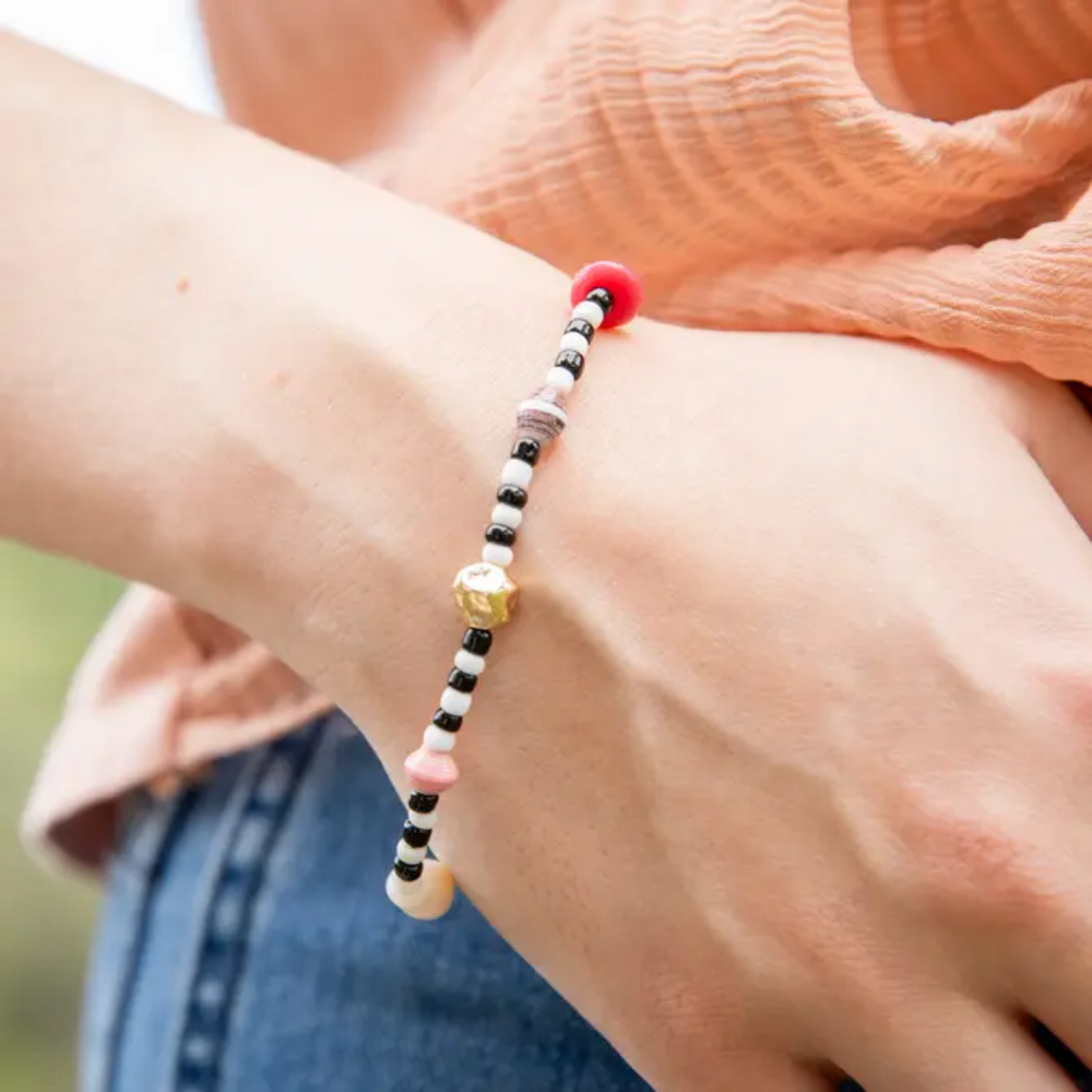 A colorful stacking bracelet with a beautiful meaning behind it. Made for the person in your life with a heart of gold, this bracelet will be sure to compliment their wrist.