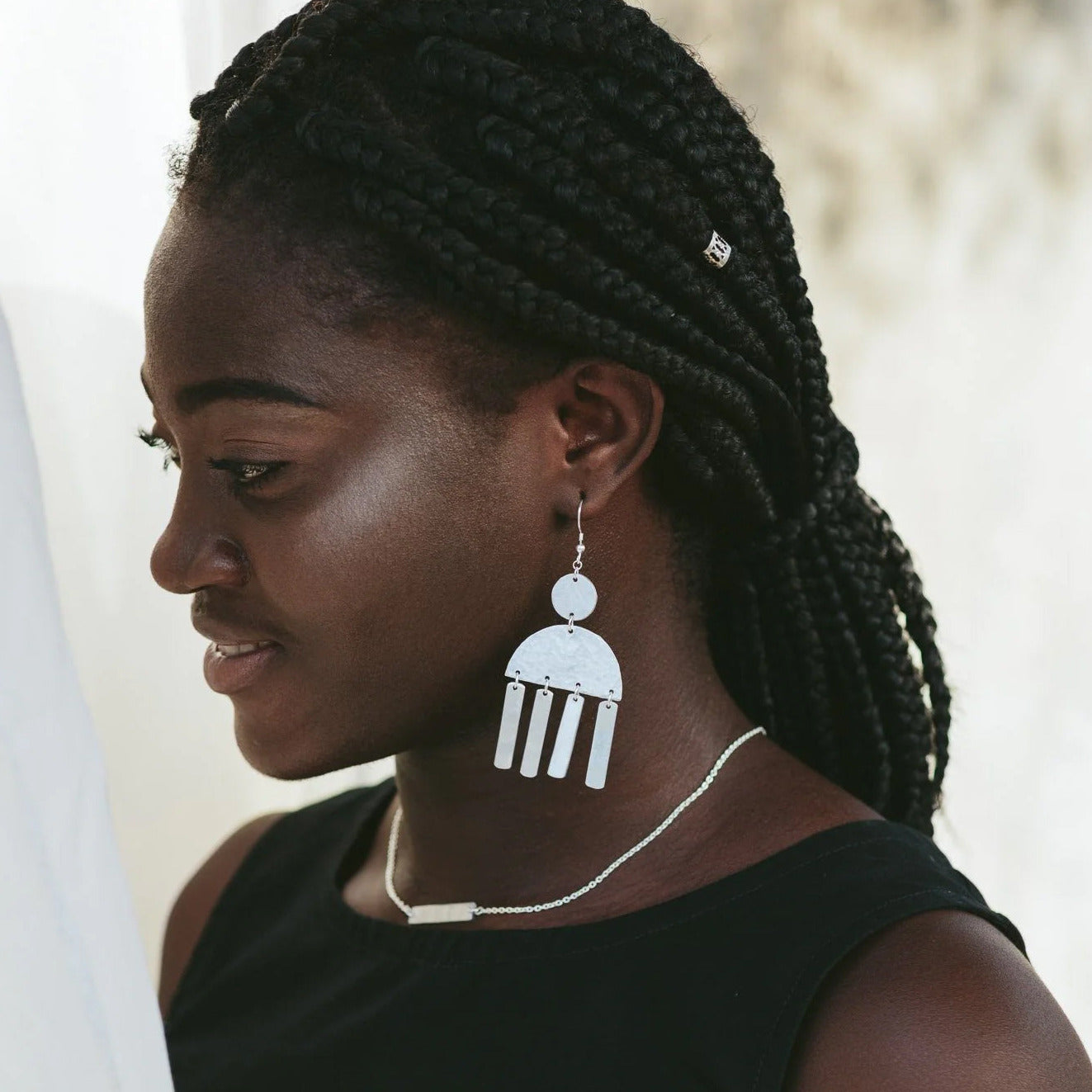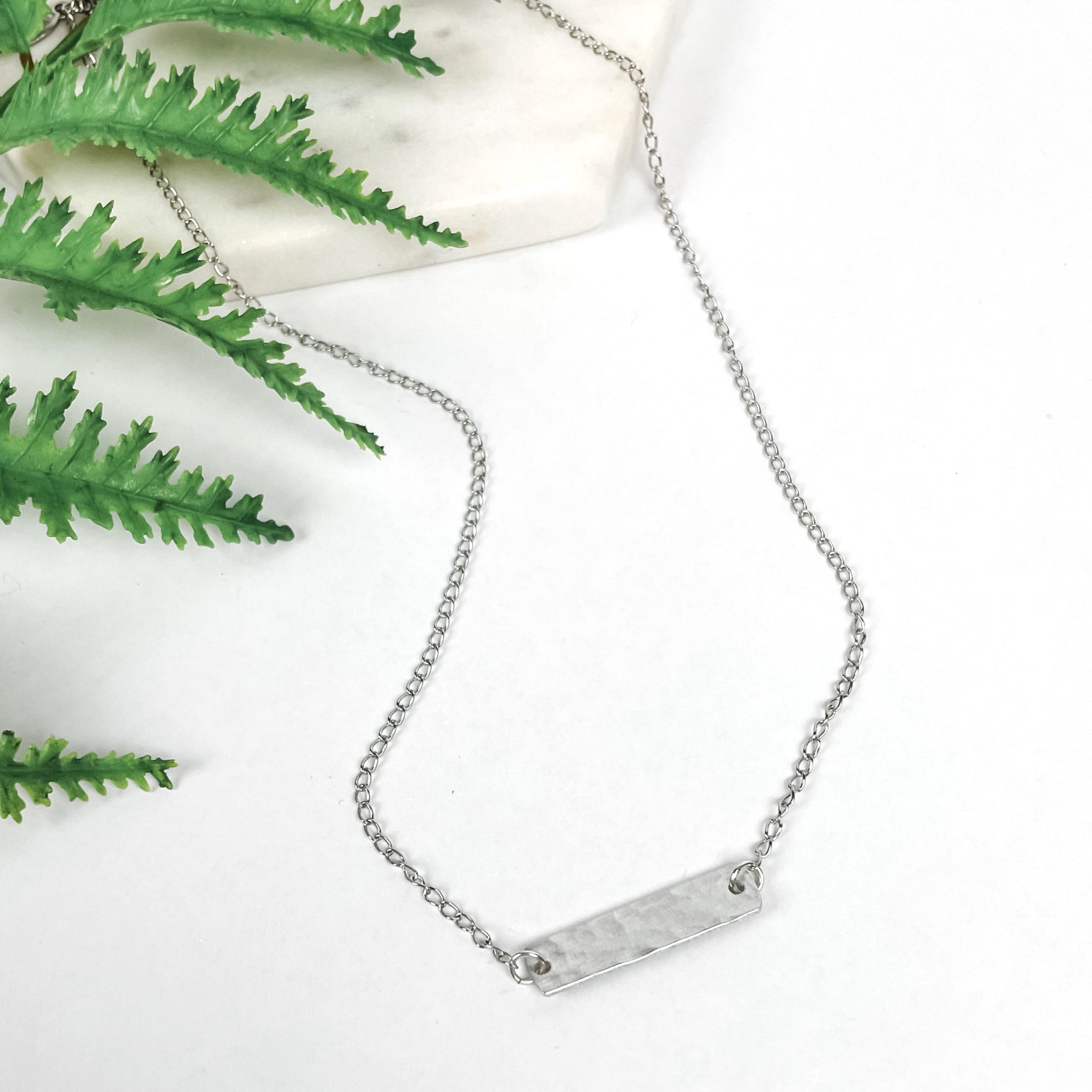 Each aluminum bar was melted down, carefully cut, sanded and polished, all with intricate design and exceptional skill. On some pieces hammered design and texture were added, creating a unique, one-of-a-kind look. Gift of Hope jewelry artisans then finished each piece with a simple, delicate chain.