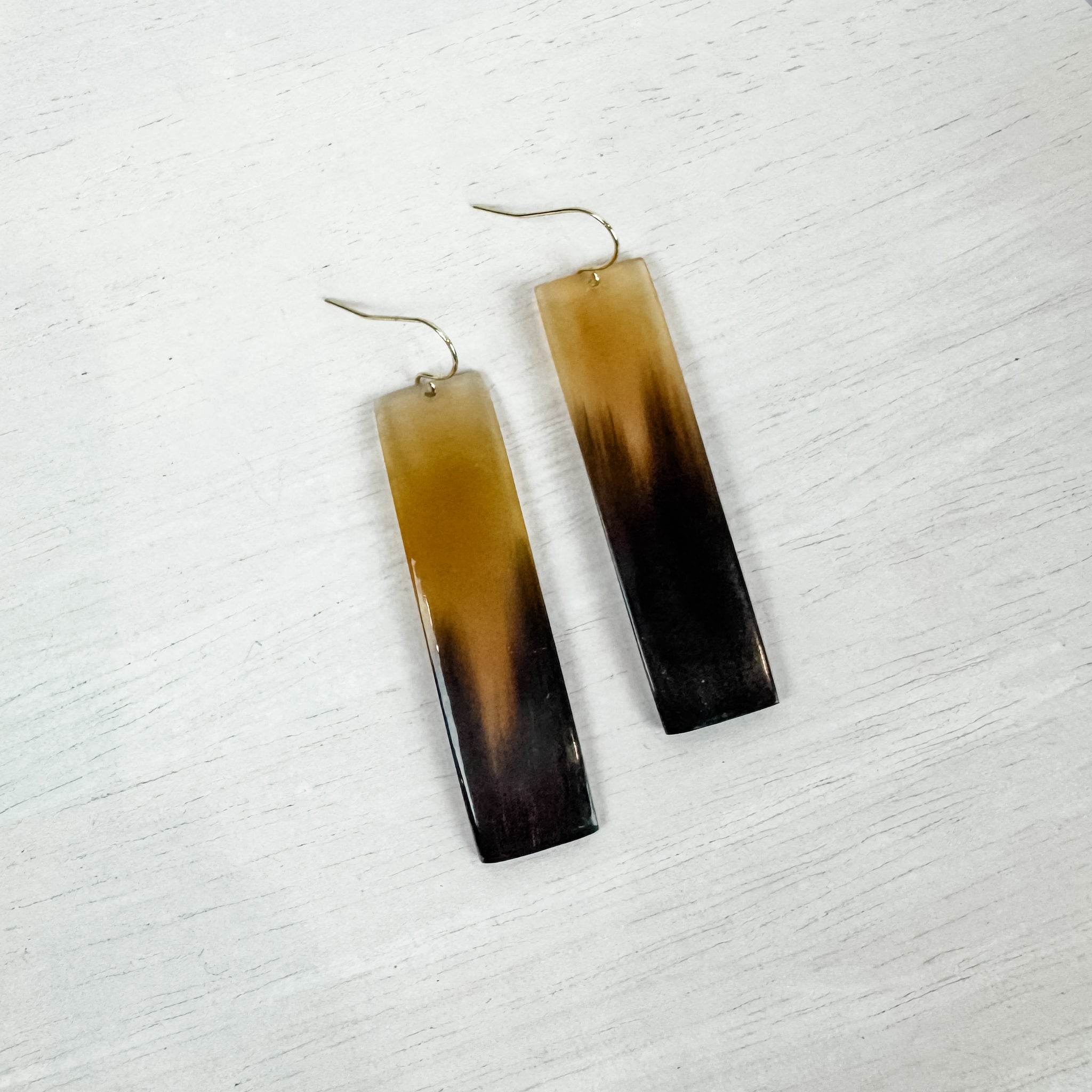 Materials: gold-plated brass earring hooks, horn (coloring will vary)