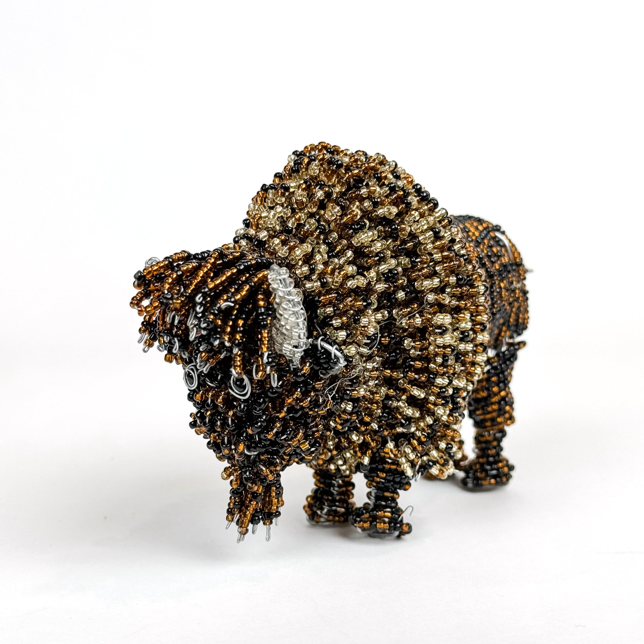 The beaded bison are strong and well-made. Once the wire bodies are formed, it can take an entire day to add each and every bead to complete one bison. The craftsmanship is truly amazing.