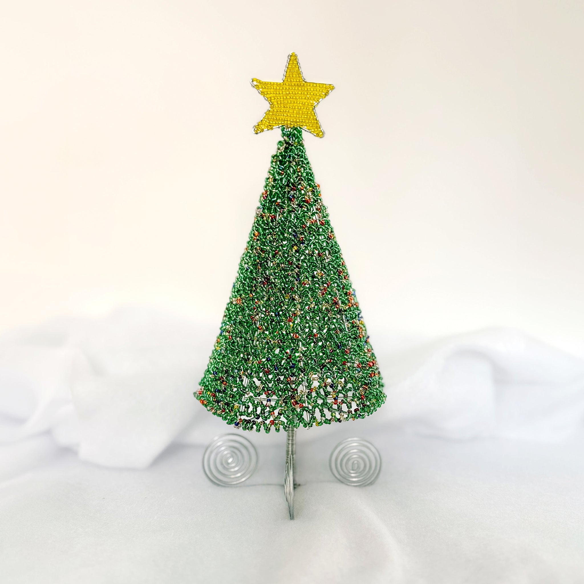 Bring the spirit of the season home with this handcrafted Beaded Christmas Tree, lovingly made by the Khutsala Artisans in Eswatini. Each tree is shaped and beaded by hand, transforming wire and shimmering beads into a festive piece of art.