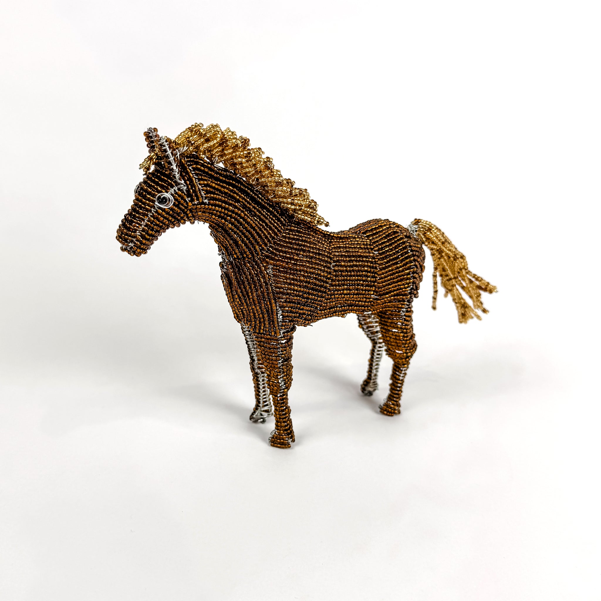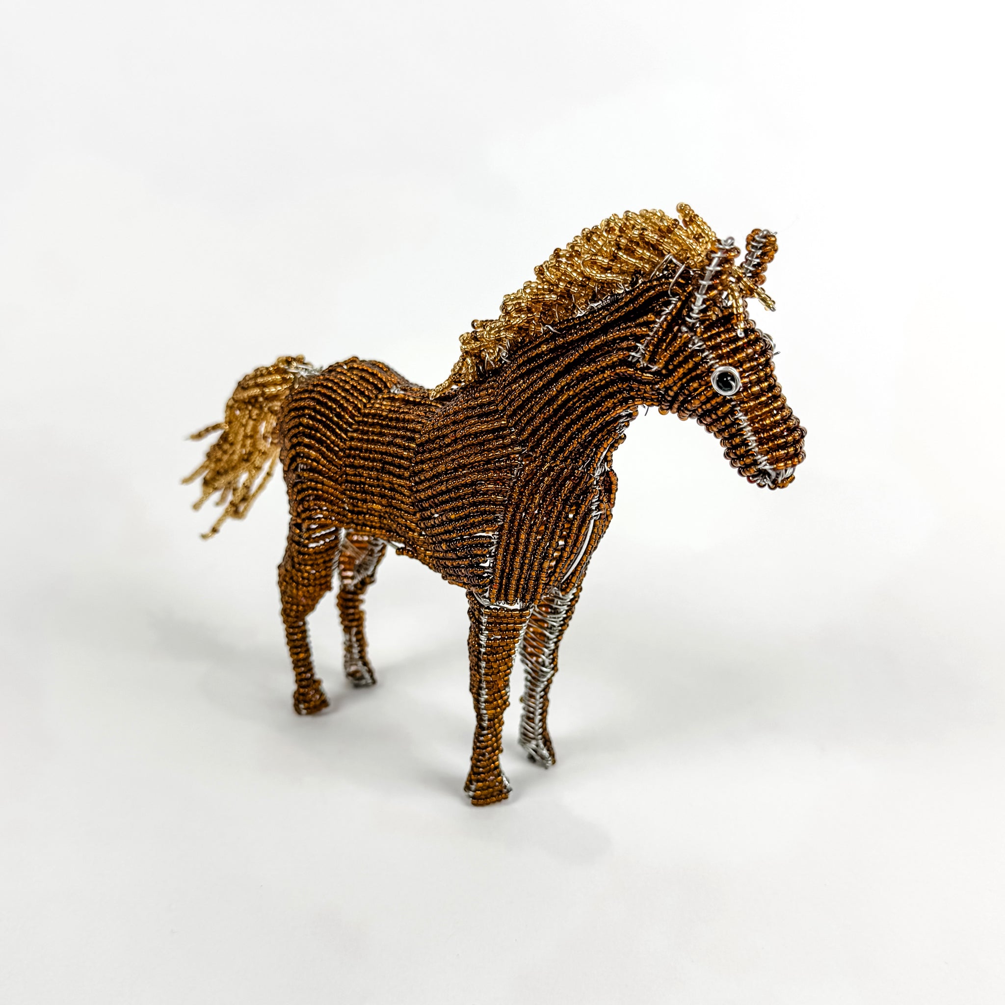 Each beaded horse is strong and well-made. Once the wire bodies are formed, it can take an entire day to add each and every bead to complete one horse. The craftsmanship is truly amazing.