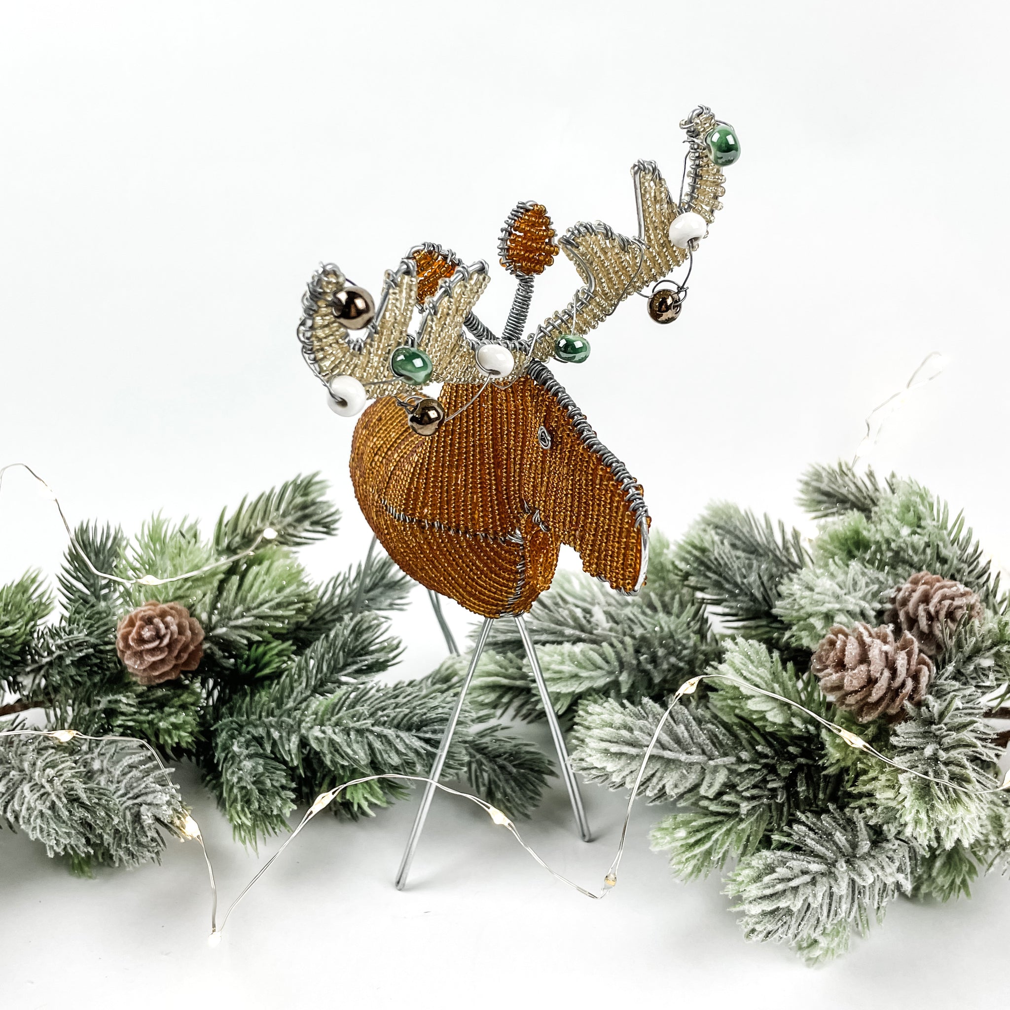 This adorable, beaded moose was handmade, bead-by-bead, by the Khutsala Artisans in Eswatini, Africa.