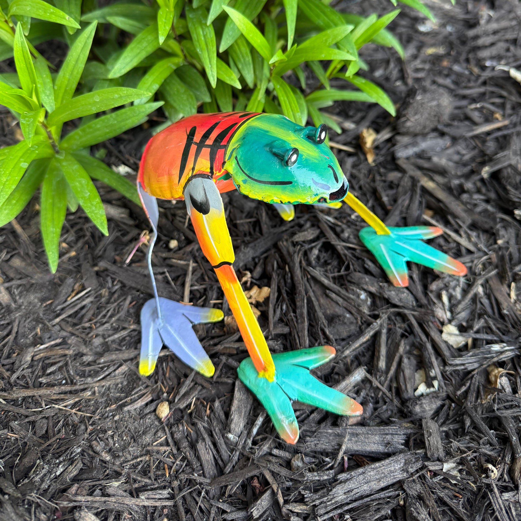 This handcrafted metal frog is sure to bring character to your home or garden!