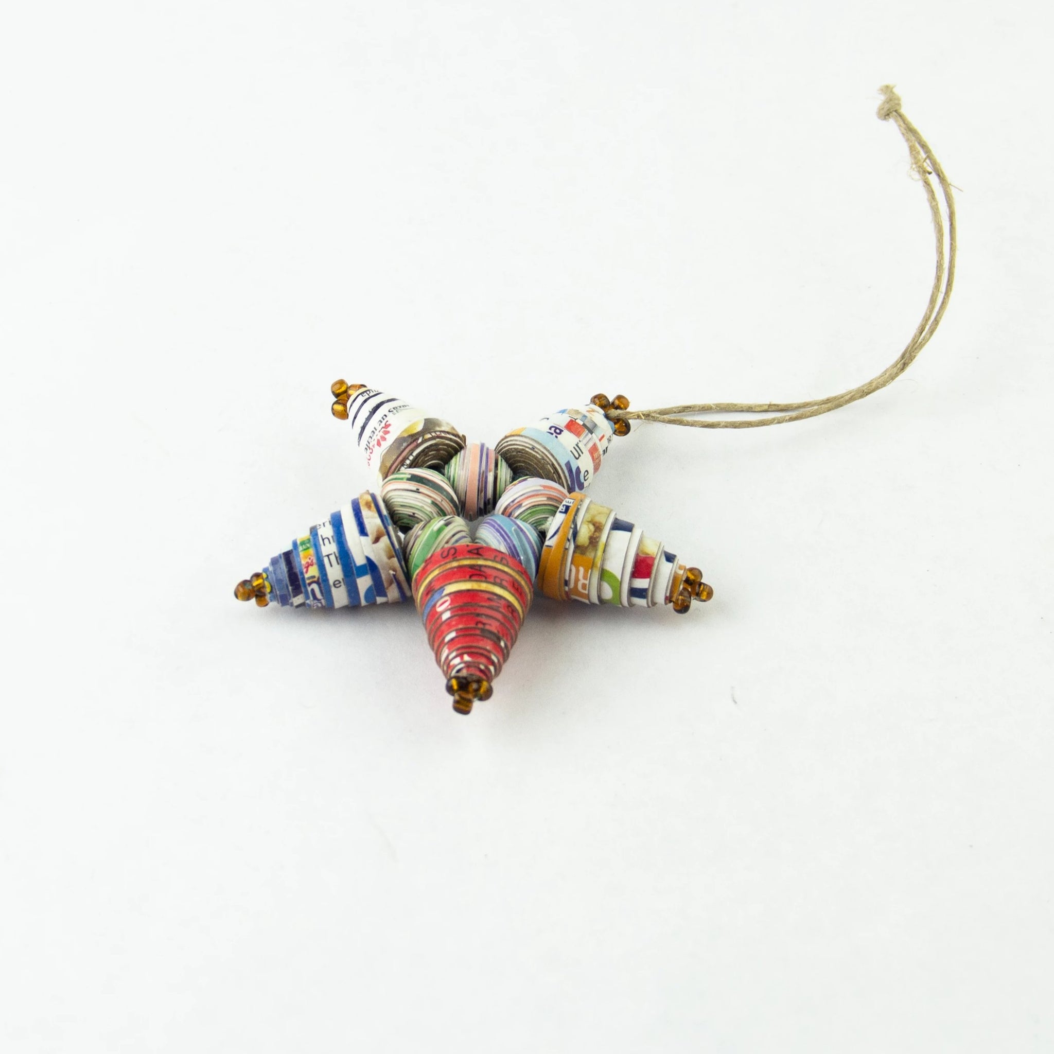 The women in the Zel Haiti program, at FMSC food partner Chances for Children in Haiti, use discarded materials such as cereal and cardboard boxes, and trash paper to create these beautiful “upcycled” ornaments. Not only are these women cleaning up the Haitian landscape with their recycling efforts, they are also bringing new hope to their families by earning the means to pay for their children’s food, shelter, and education. This means fewer orphans, minimized crime, less garbage, relieved stress, and a whole lot more beauty!