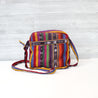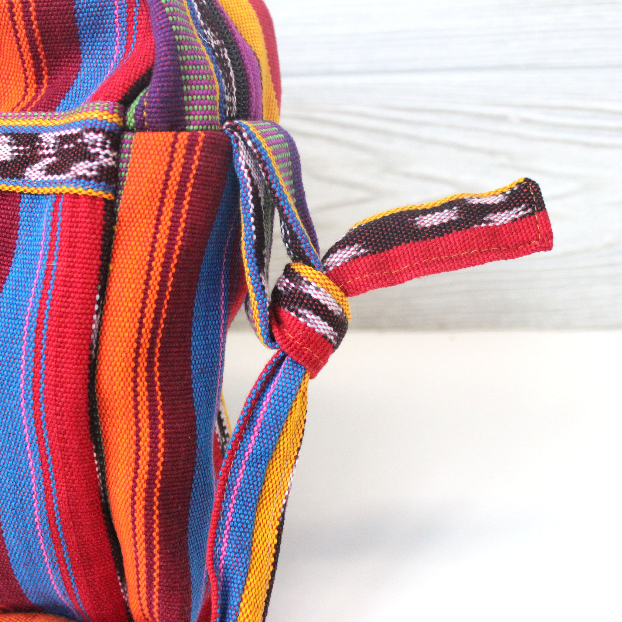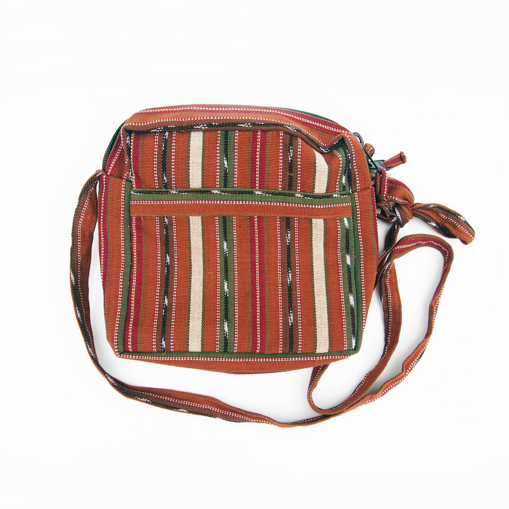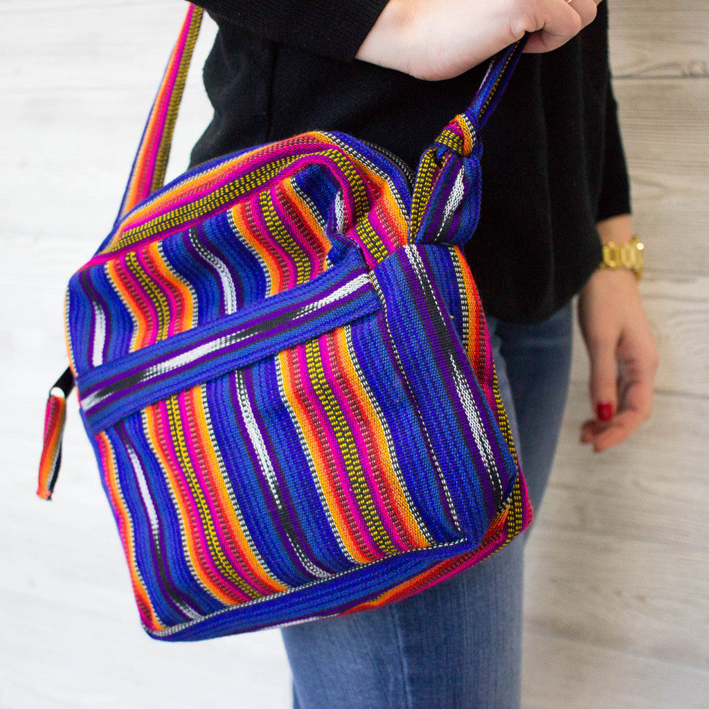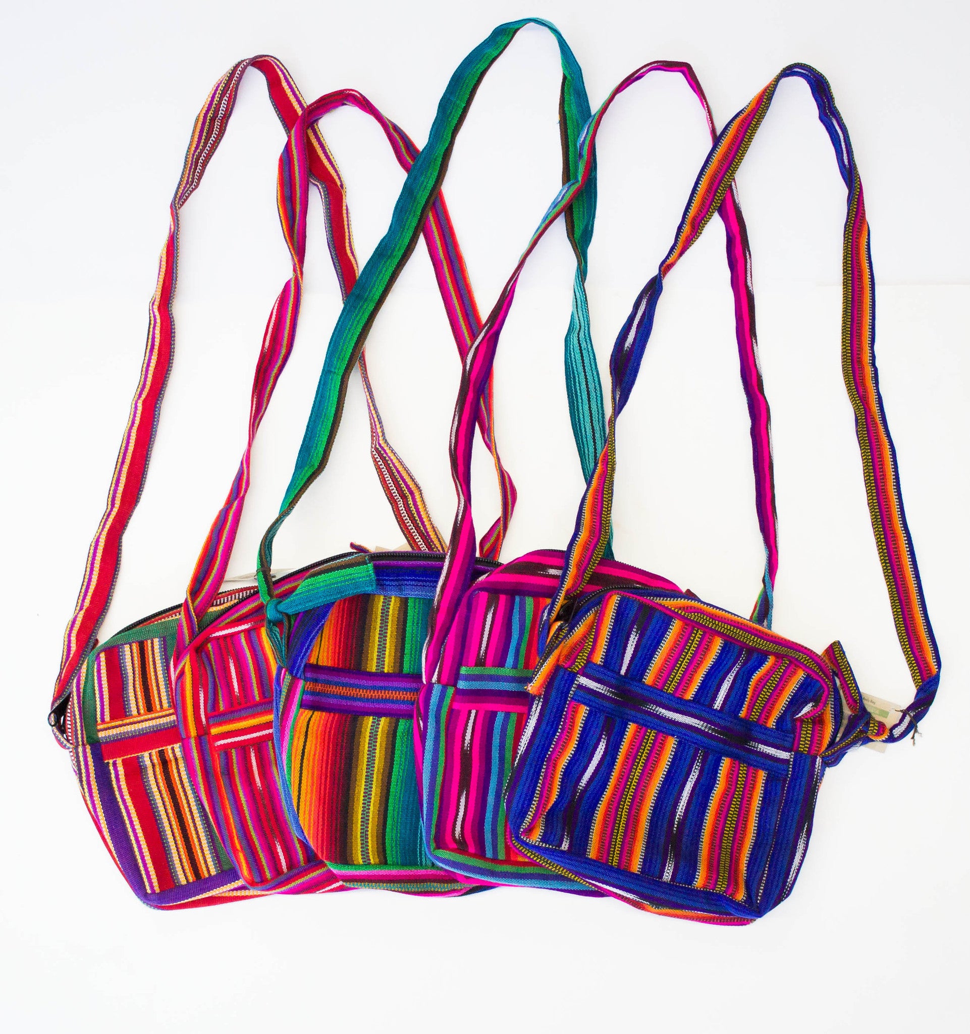 This versatile, colorful bag is sure to liven up any outfit while also providing a comfortable and practical bag or purse! Made from durable, international fabrics, the strong straps and well-sewn zipper will keep your items safe as you go about your day. Each hand-sewn bag is made by FMSC's artisan partners in Cascabel, Nicaragua. A cloth loop gives this bag an adjustable strap to choose your length.