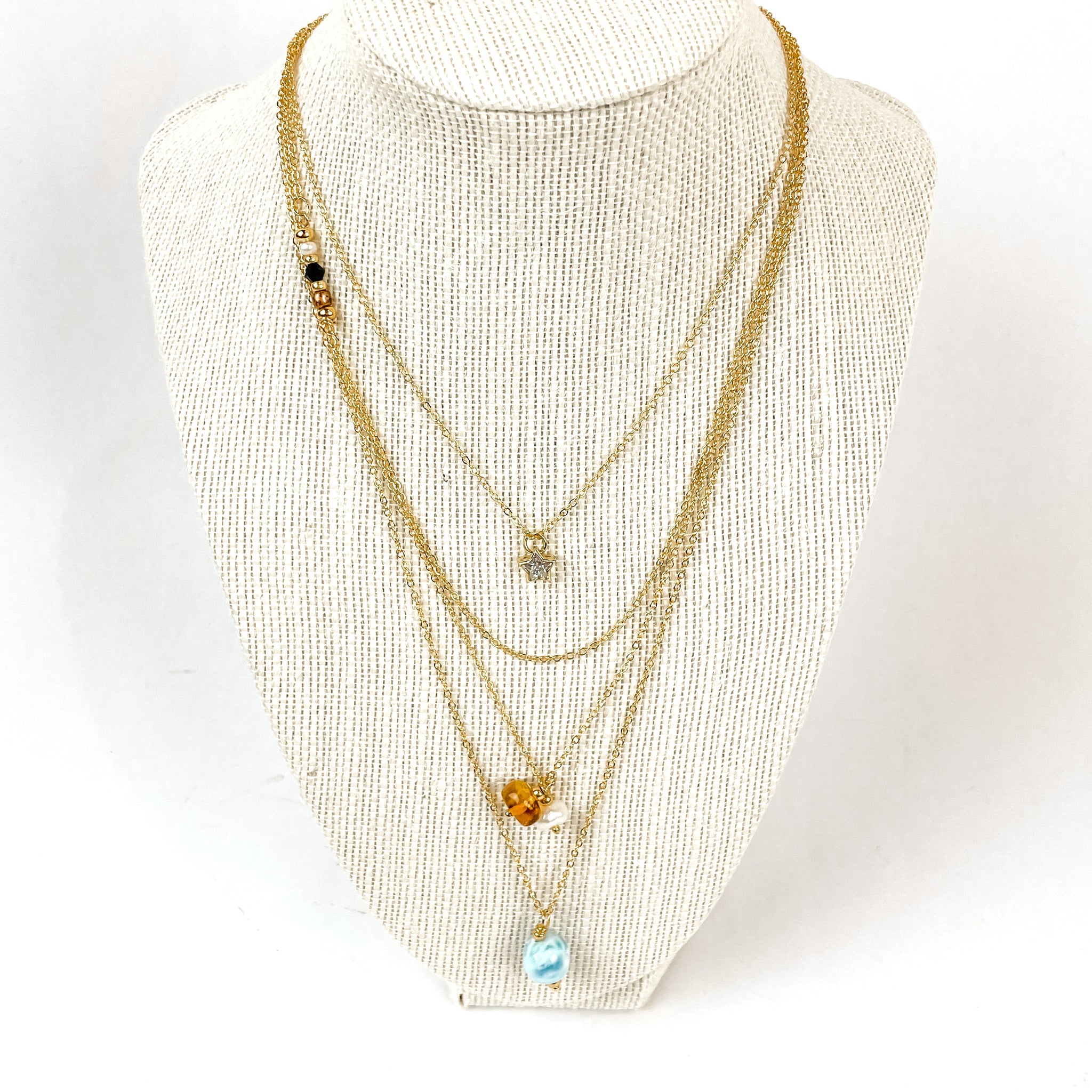 Featuring a stunning Larimar stone, this gorgeous necklace set is handmade by artisans at Manos Esforzadas and beautifully represents the Christmas story. The star represents the Star of Bethlehem, the three-bead strand represents the three wise men, the amber bead represents Joseph and the pearl represents Mary, and the Larimar stone represents Jesus.