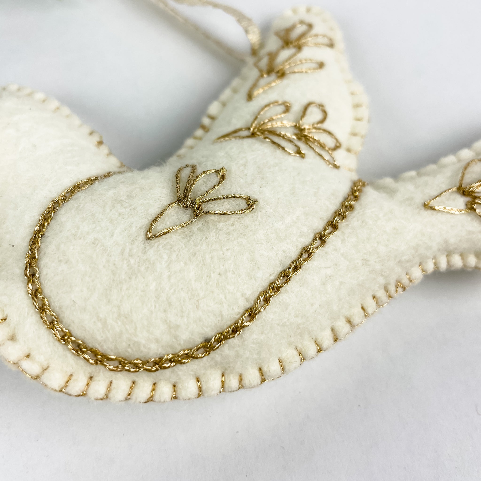 This lovely felt dove ornament is handmade by artisans at Vi Bella in Haiti and is sure to be a treasure for years to come. Hang on your tree, from your stocking, or tie to a gift to make things extra special.
