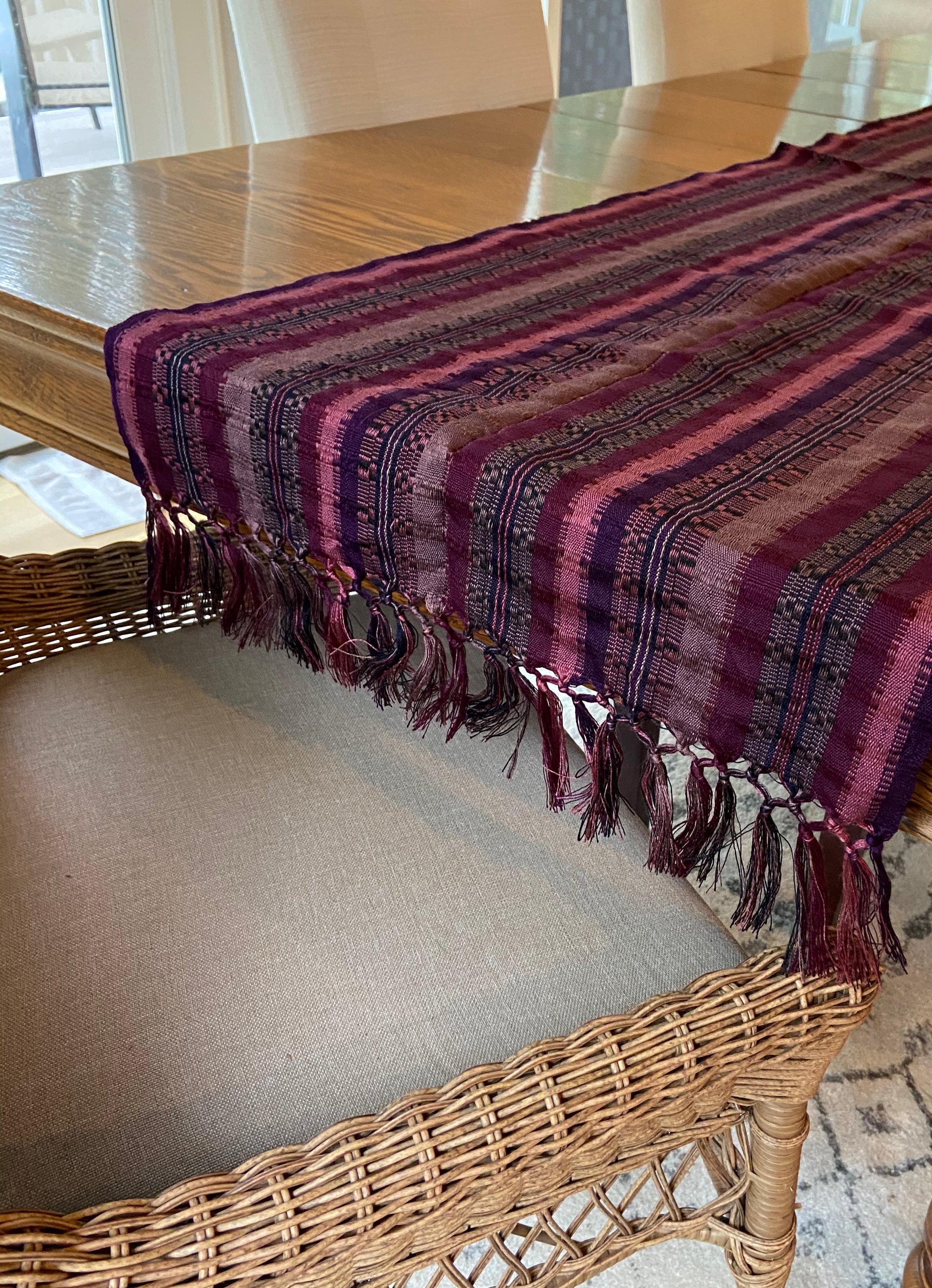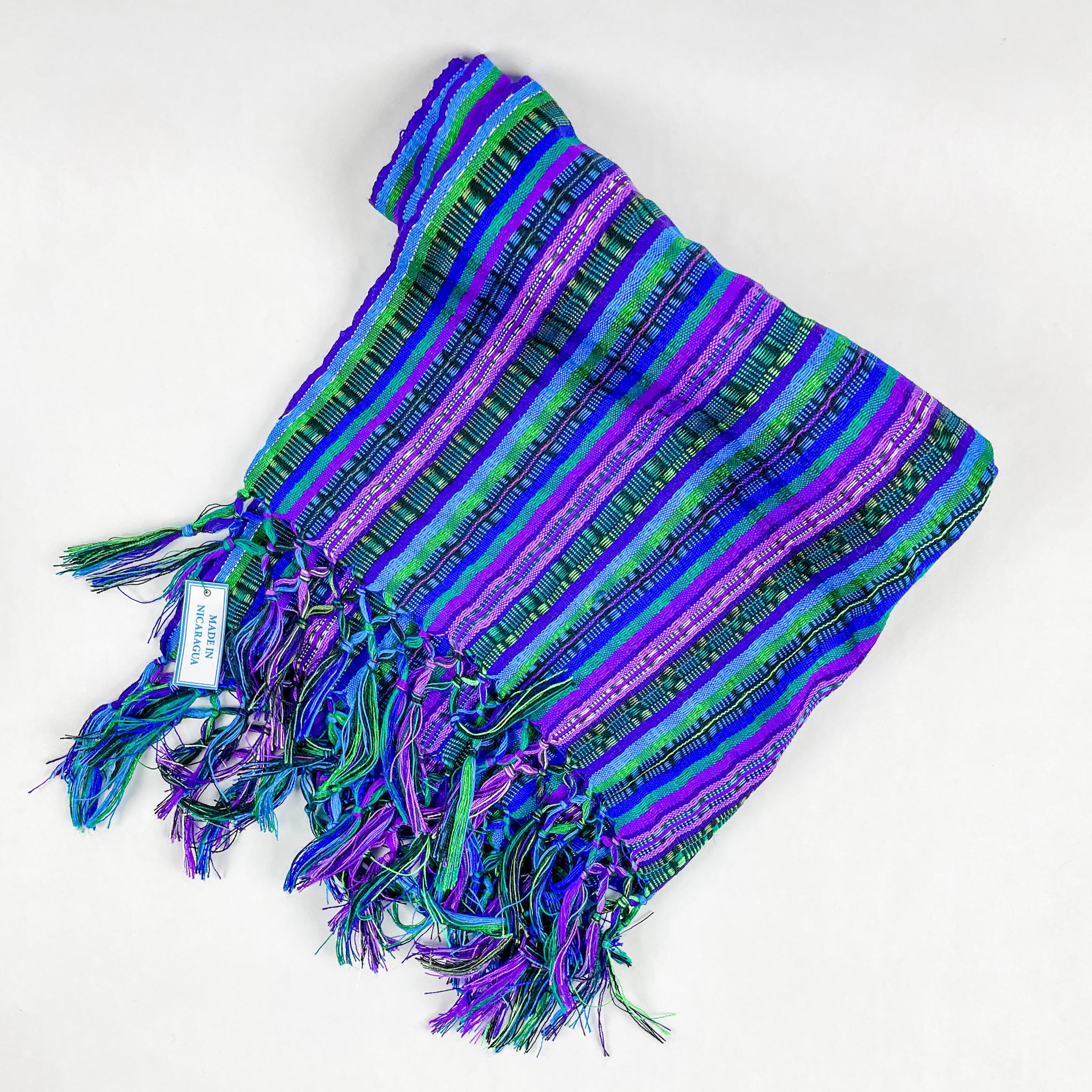 The fabric is trimmed, sewn and the ends are braided by hand by FMSC artisan partners in Cascabel, Nicaragua.