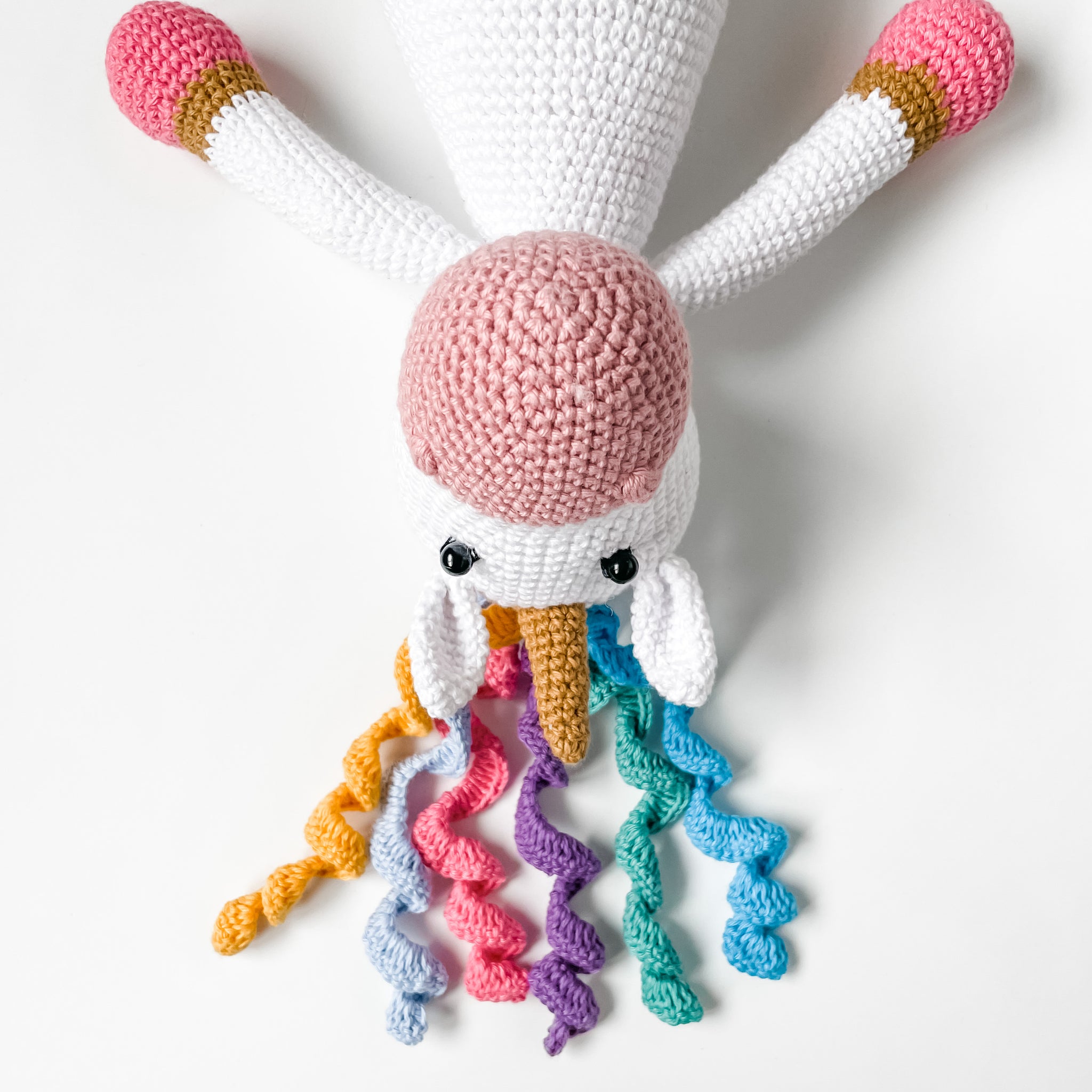 The term amigurumi refers to the beautiful and artful technique of crocheting and knitting stuffed animals or other 3D objects. The first part of the word means knit or crochet and the second part means stuffed doll/toy. Essentially, it means "knit/crocheted stuffed toy friend!" How awesome is that?