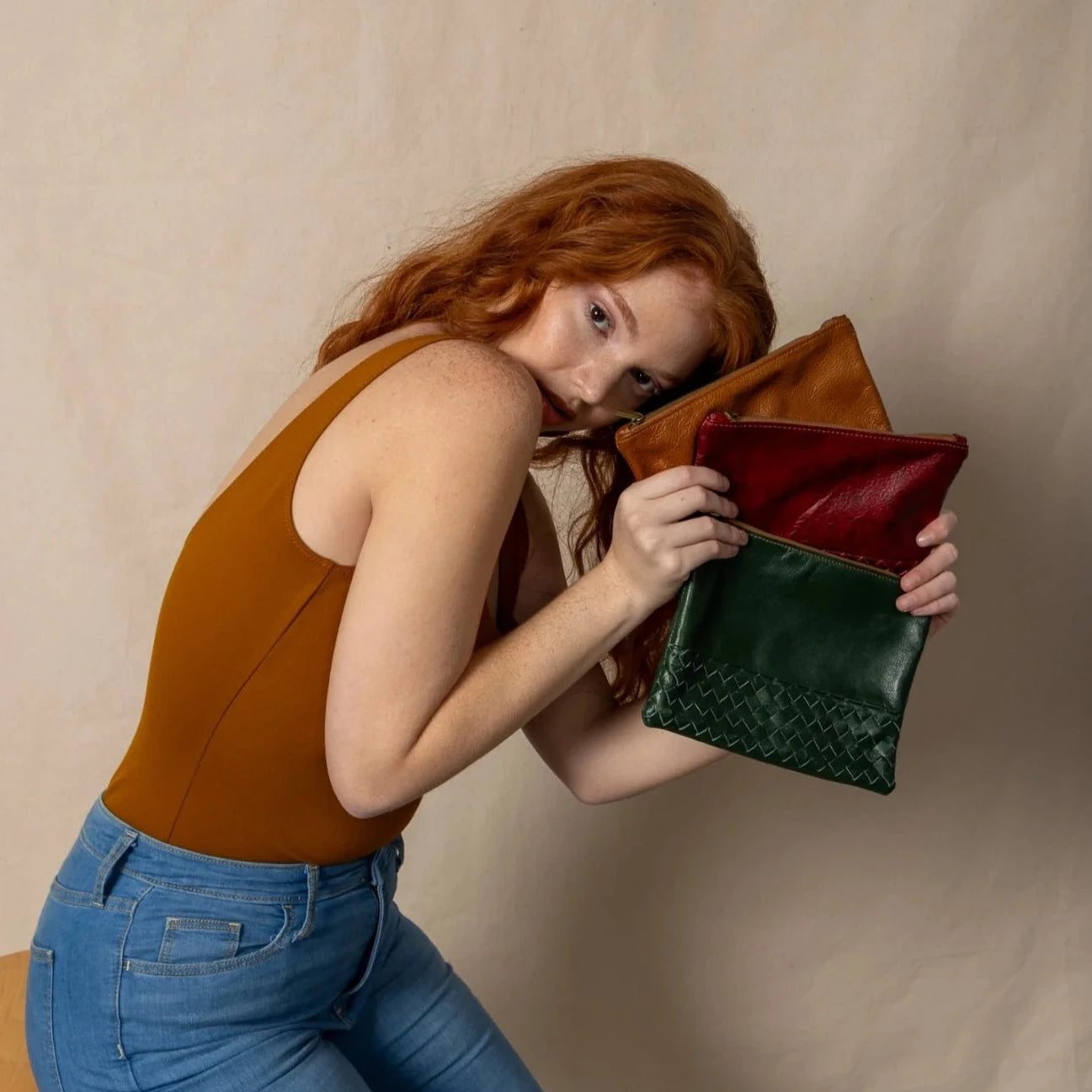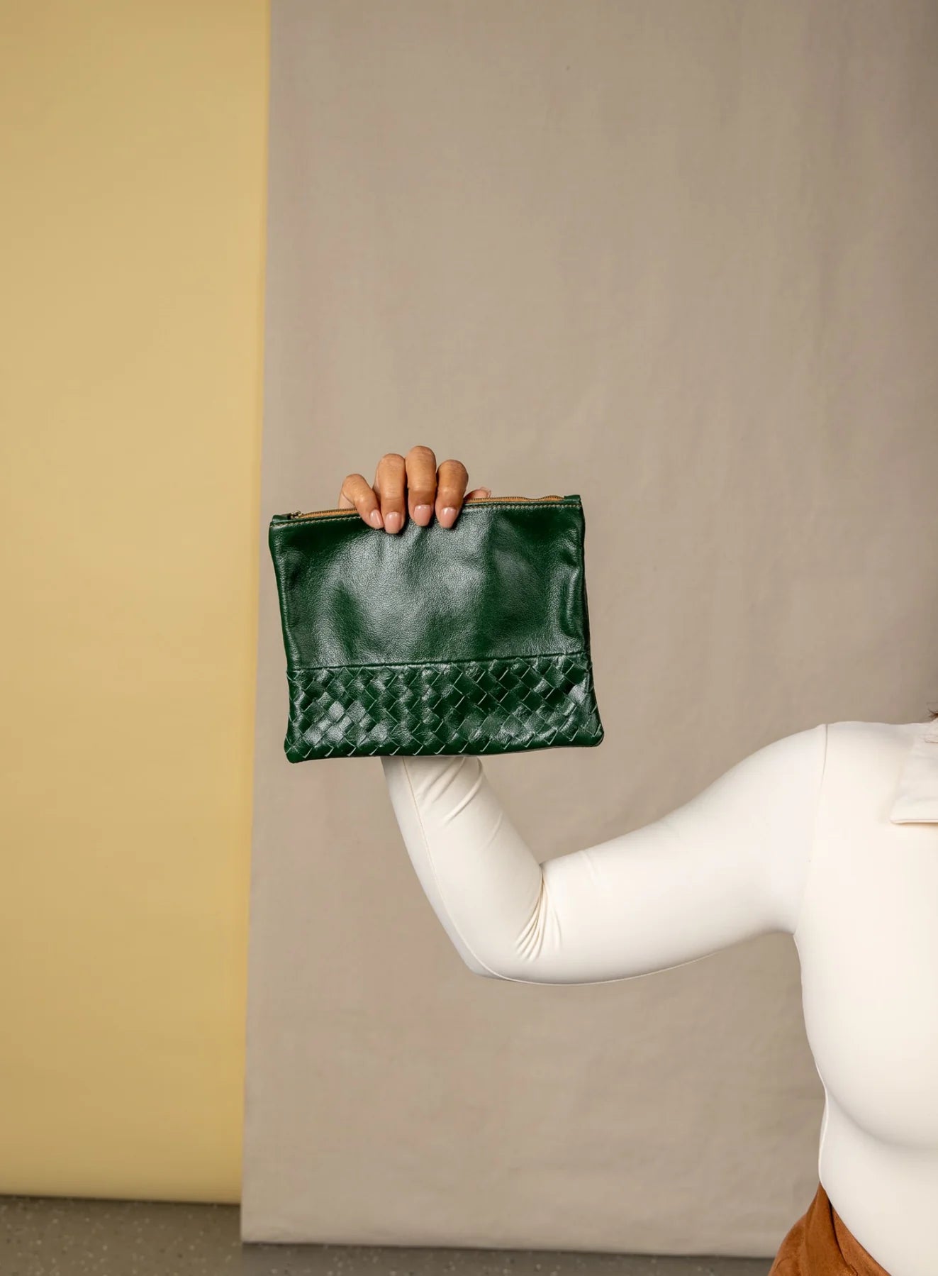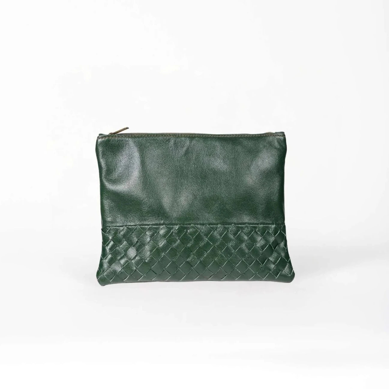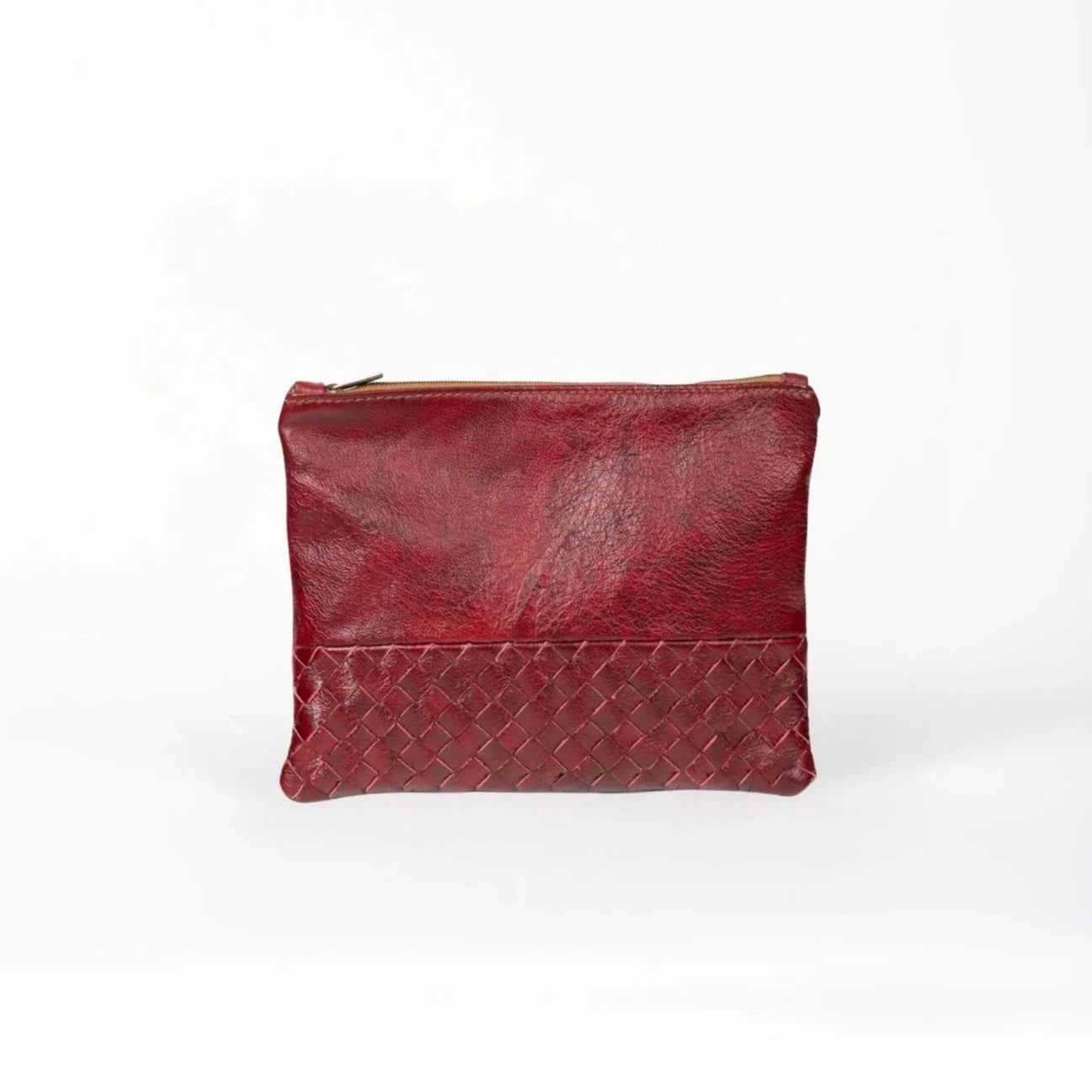 The Large Woven Pouch features intricate woven detailing and is testament to quality craftsmanship. This spacious accessory is designed for those who appreciate both style and practicality. With an ample interior, it effortlessly carries your essentials and makes a bold fashion statement. This pouch is the perfect choice for individuals who value sustainability and a touch of artistry in their daily style.