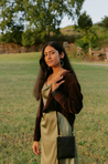 The perfect small bag for a carefree day or night; it holds just enough. This little bag features an adjustable strap so it can go on your shoulder or across your body and is finished with a magnetic closure.