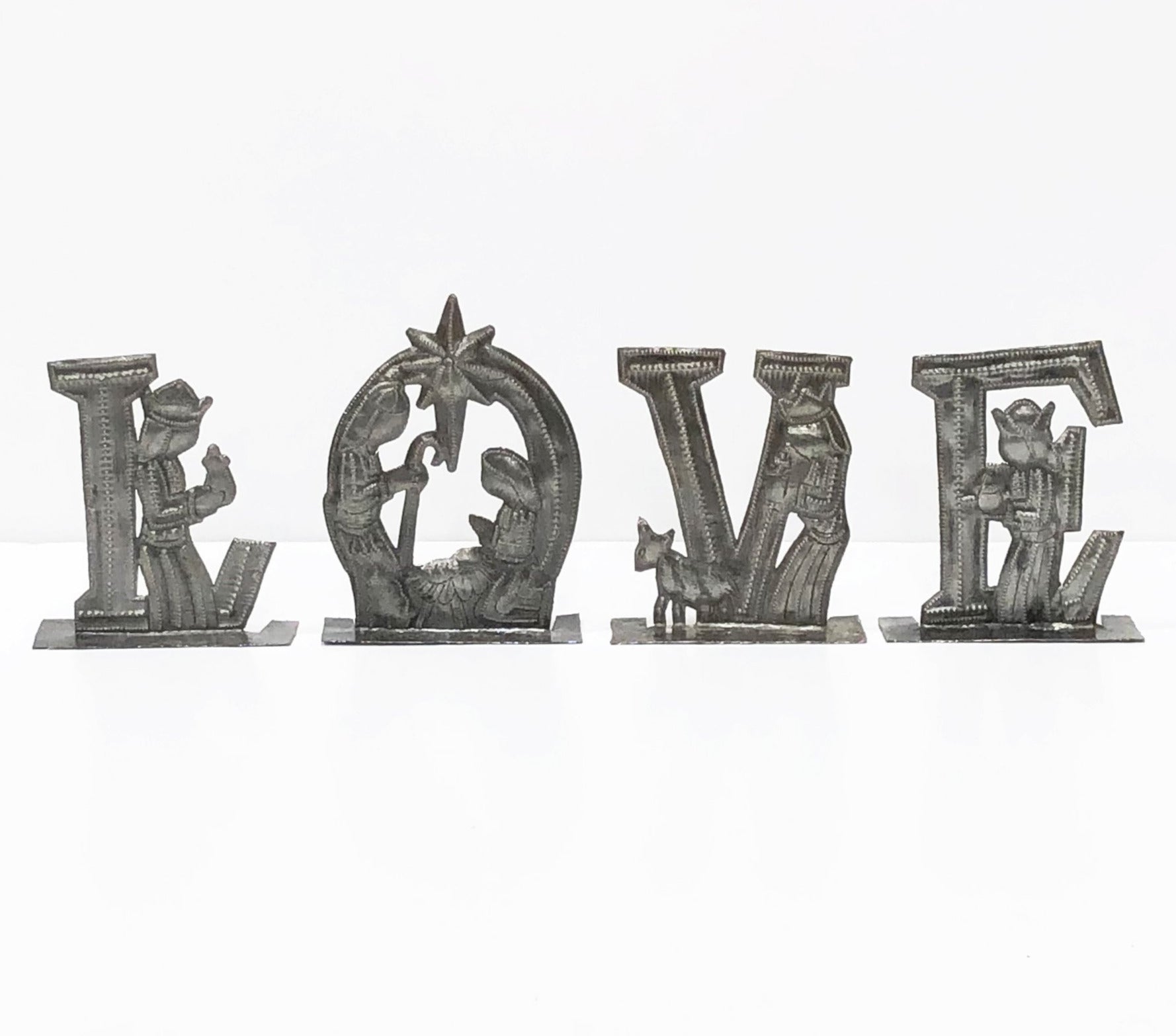 You will fall in LOVE with the Christmas story represented within this four piece metal art set, handcrafted by artisans at Anchored in Hope.