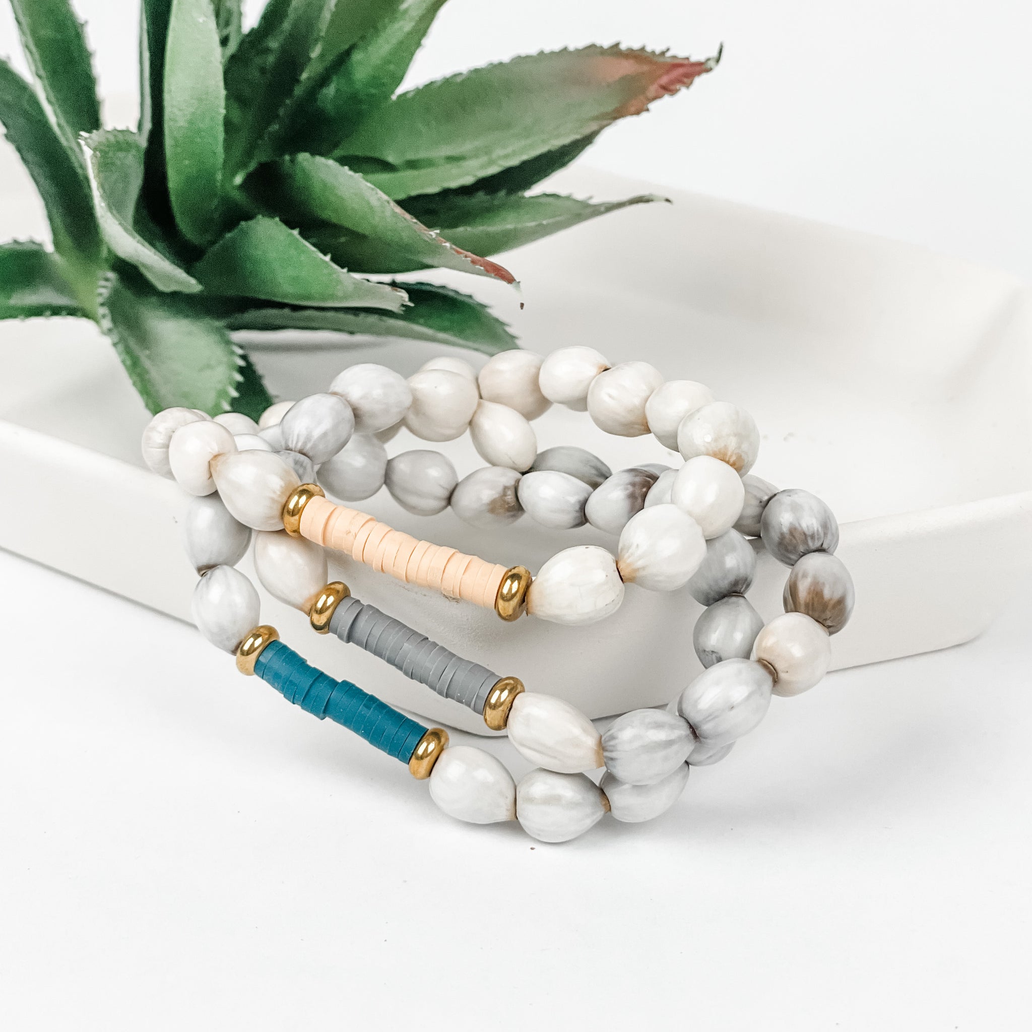 Your bracelet stack just got so much more fun with these ethically made styles! The Majok Heishi stackable bracelets are available in three different earth tone colors; slate, ocean, and sand. Mix and match with your favorite colors and styles, or buy matching bracelets as friendship/sisterhood bracelets to gift to those you love!