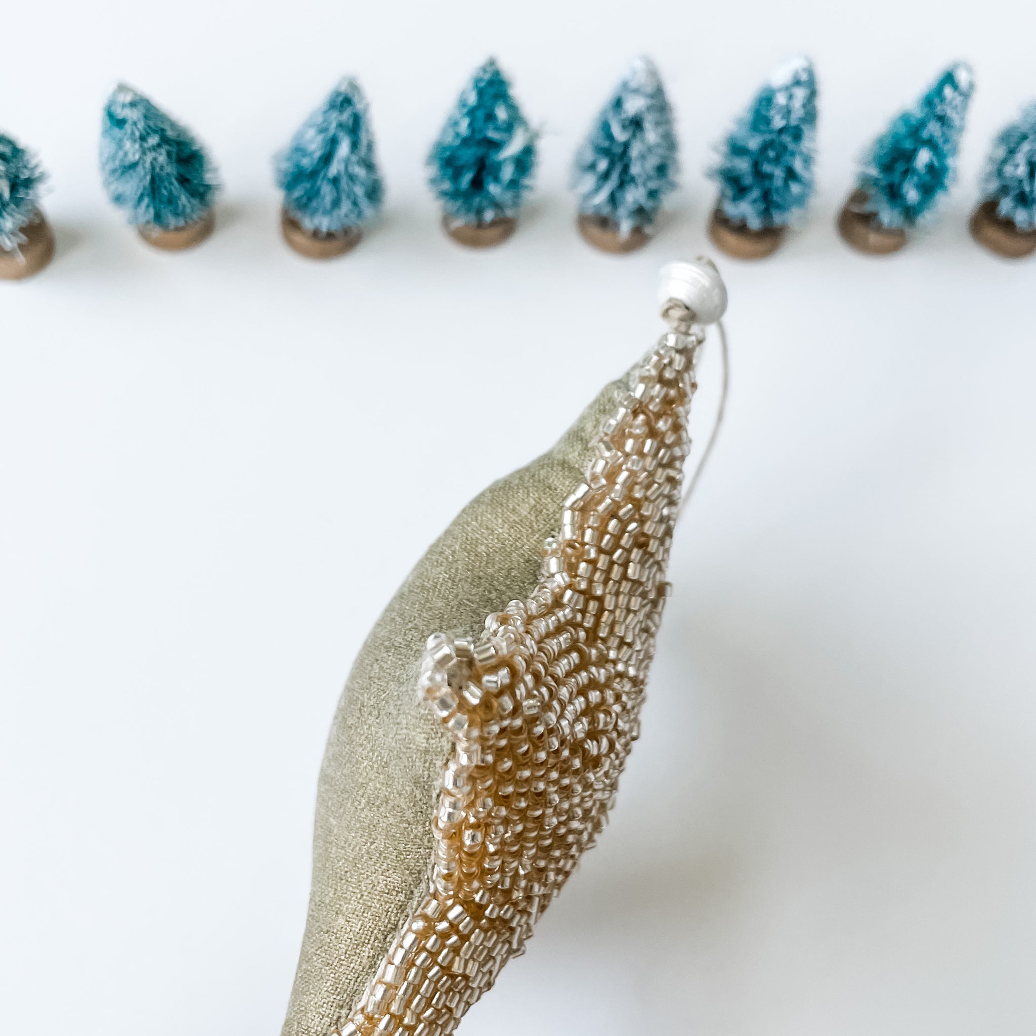 This stunningly beautiful ornament was hand-beaded and sewn by artisans at Vi Bella in Haiti. Hang on your tree, from your stocking, or tie to a gift to make things extra special. When you purchase an ornament, you help keep artisans employed in impoverished areas of Haiti where jobs are scarce.