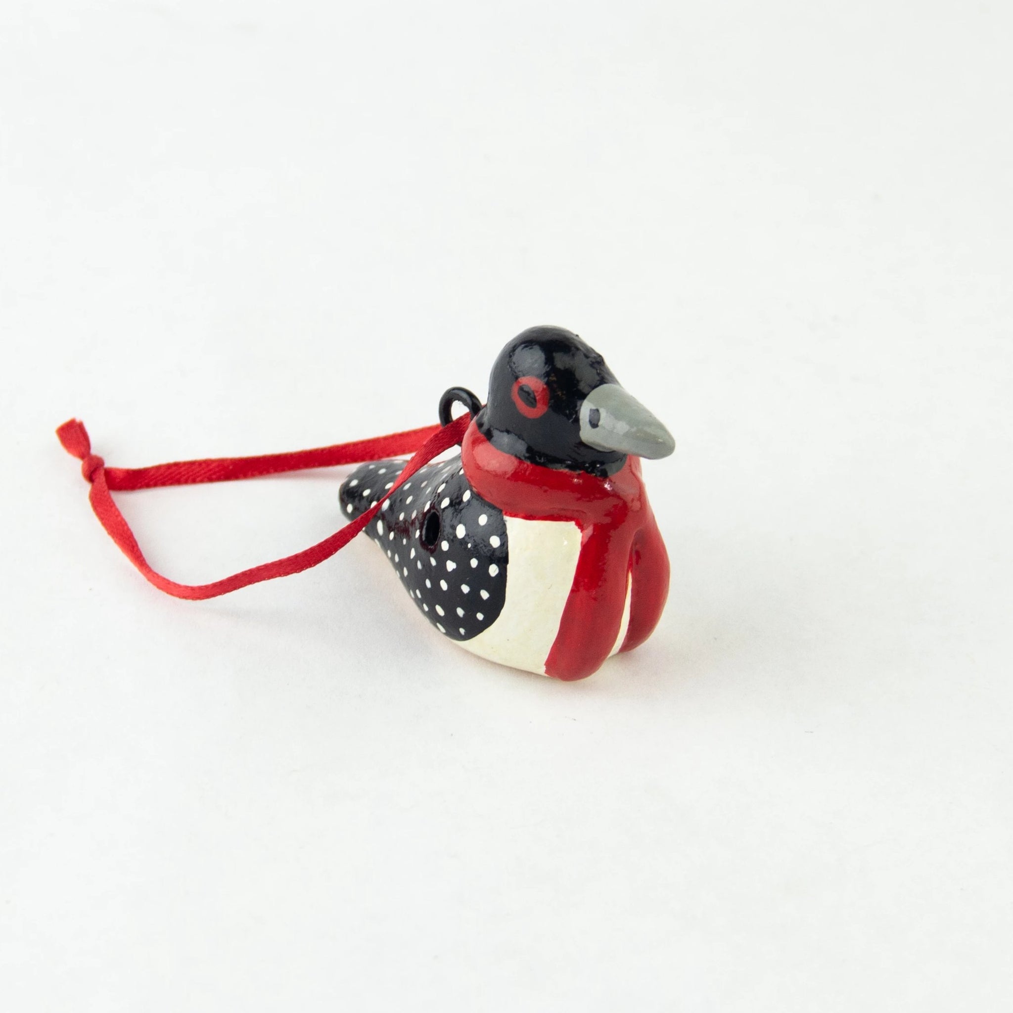 These adorable mini loon whistle Christmas tree ornaments are handcrafted from clay by William and his family.