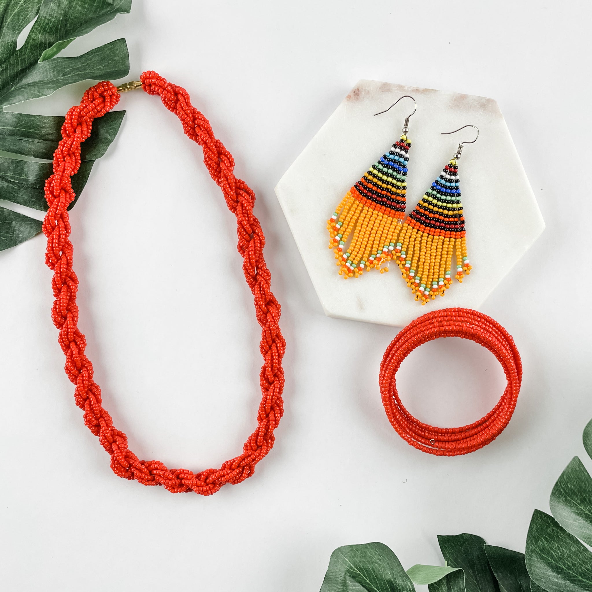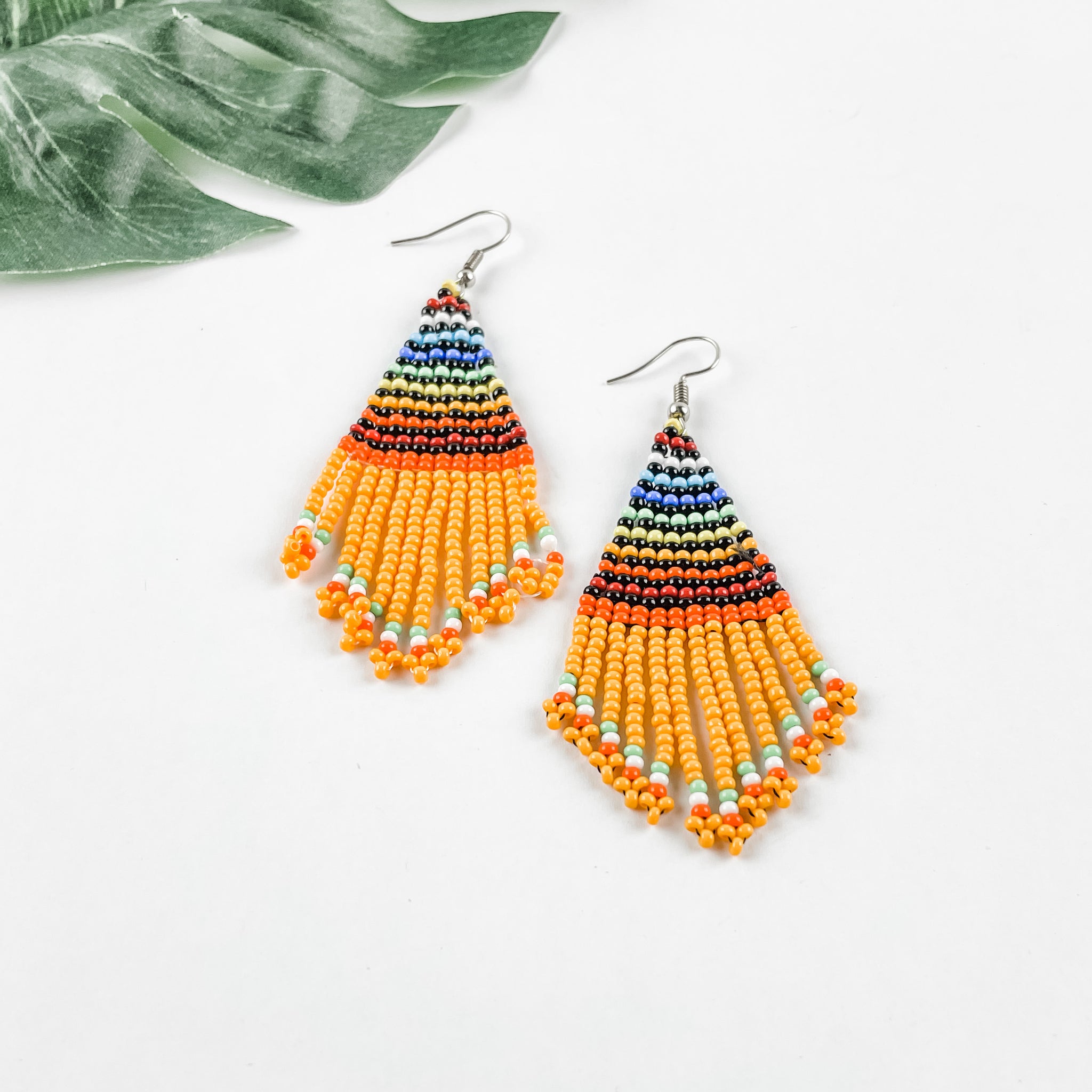 Make a statement with these bold, handmade beaded earrings! They are sure to add an effortlessly cool pop of color to any modern boho look.